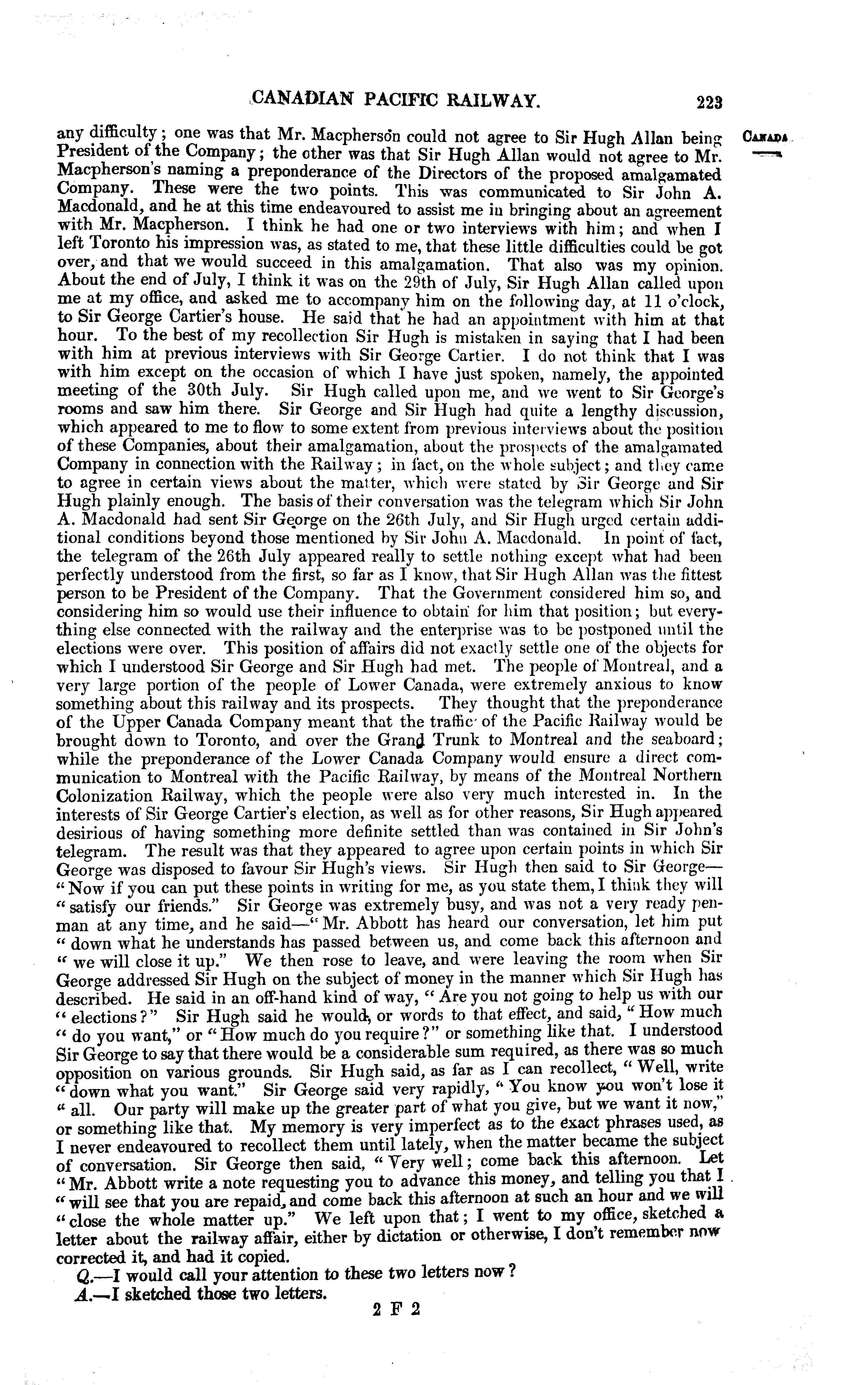 Relates to the Pacific Scandal.Title from title screen."Presented to both Houses of Parliament by Command of Her Majesty, March, 1874."Original issued in series: [Command papers / Great Britain. Parliament] ; Cd. 911.