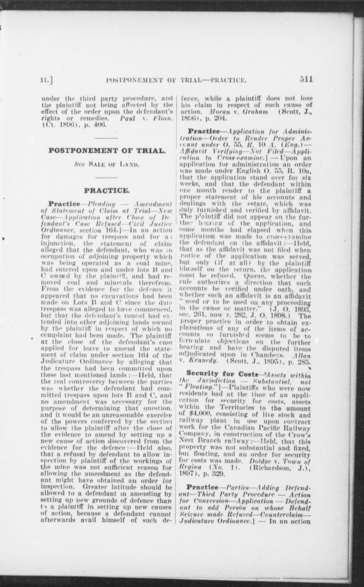 The Territories law reports : containing reports of cases decided in the Supreme Court of the North-West Territories, including revised reports of all cases hitherto reported in "The North-West Territories reports"