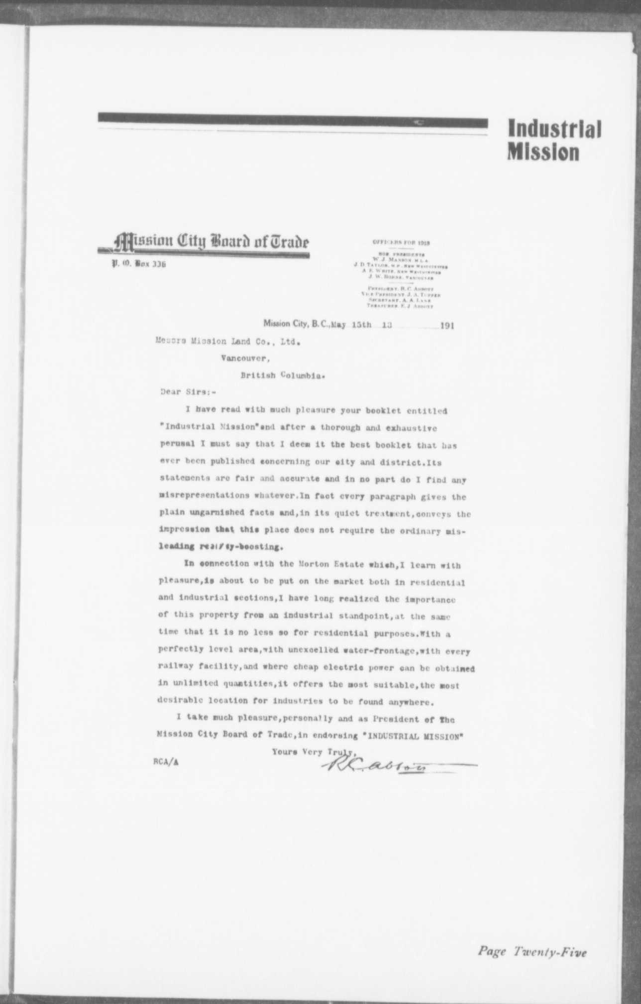 "Endorsed by the Mission City Board of Trade."
