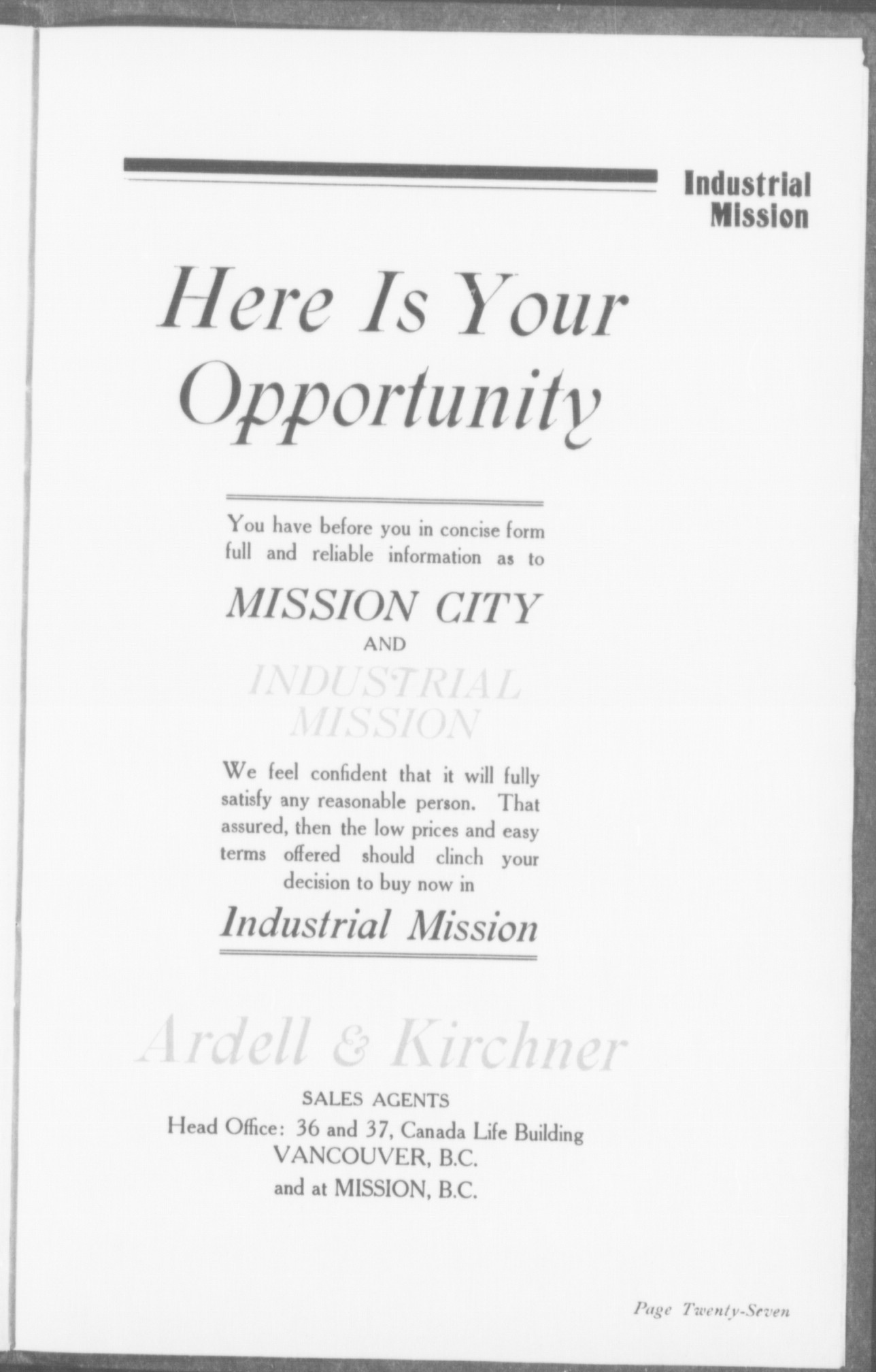 - Vancouver, B.C. : Mission Land Company Limited, [1913?]