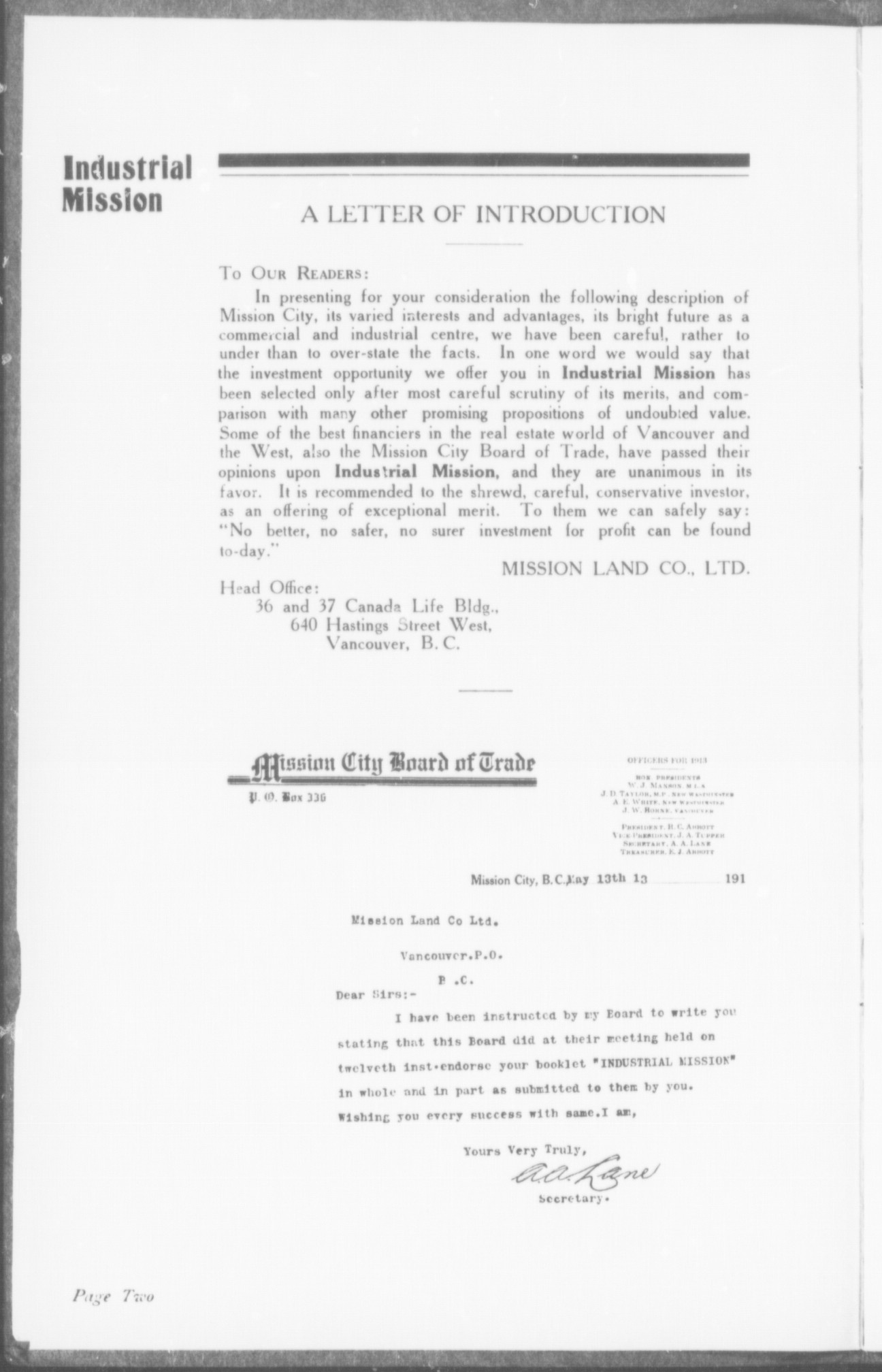 - Vancouver, B.C. : Mission Land Company Limited, [1913?]