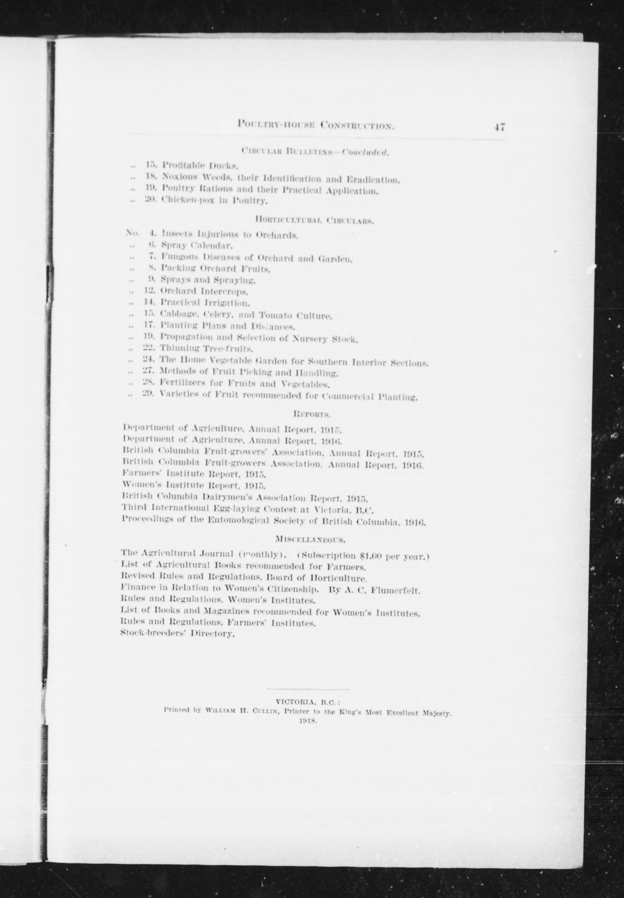 - Victoria, B.C. : W.H. Cullin, 1918.