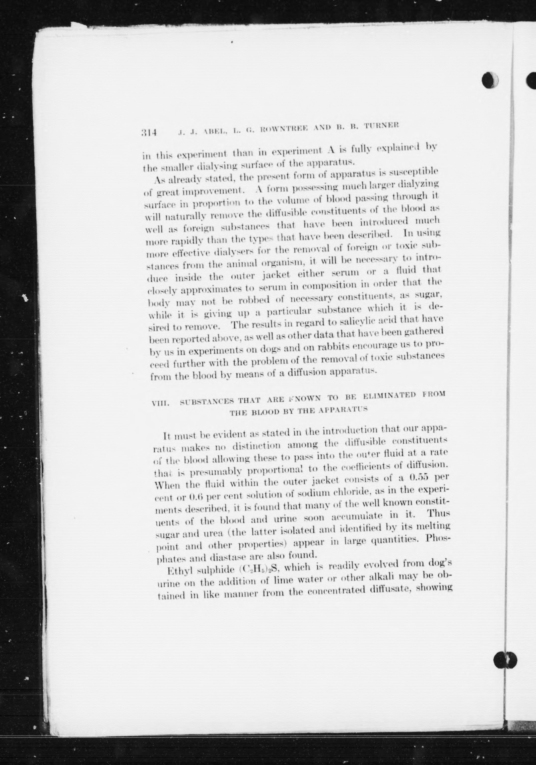 On the removal of diffusible substances from the circulating blood of living animals by dialysis /