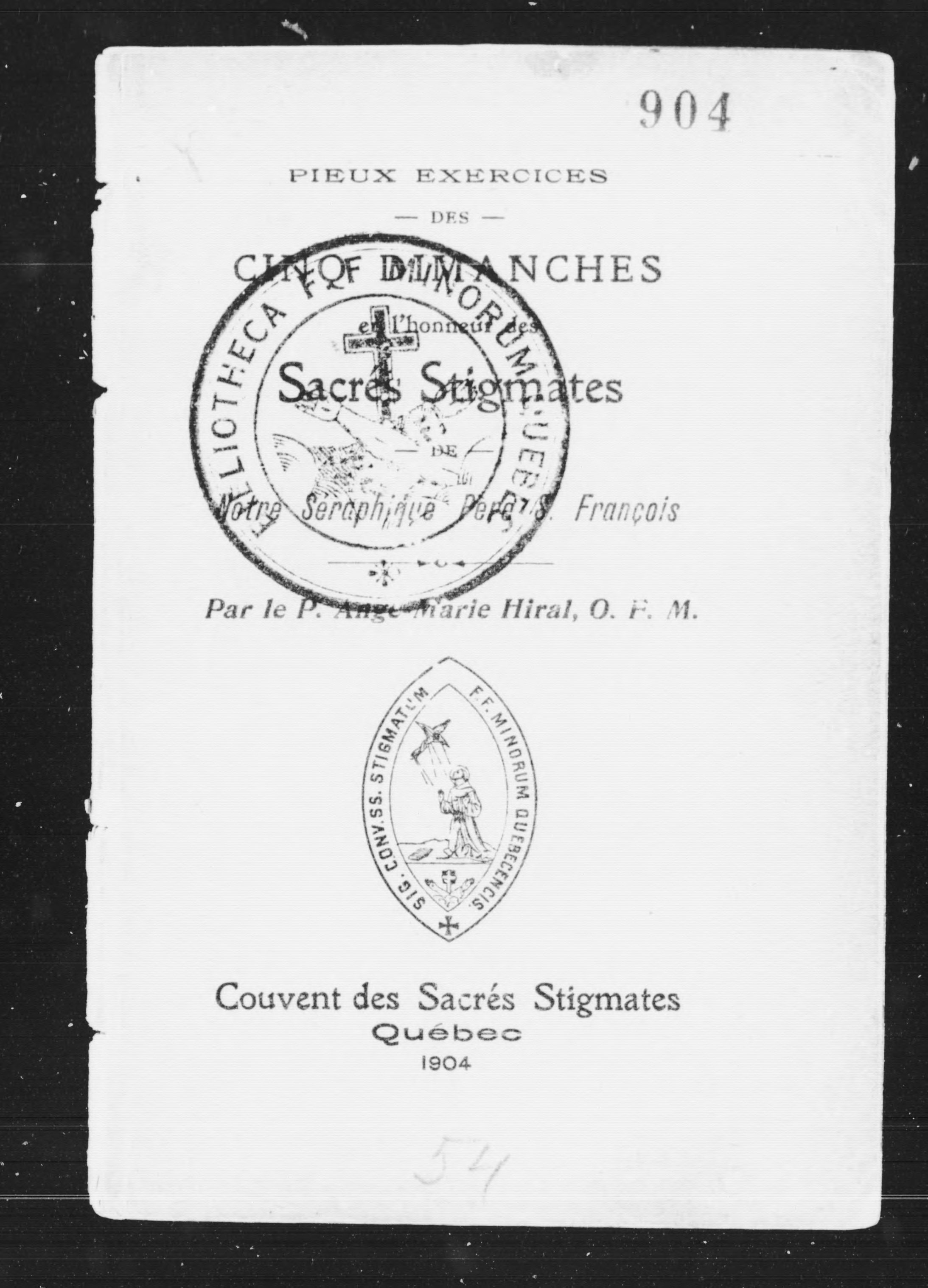 - Québec : Couvent des sacrés stigmates, 1904.
