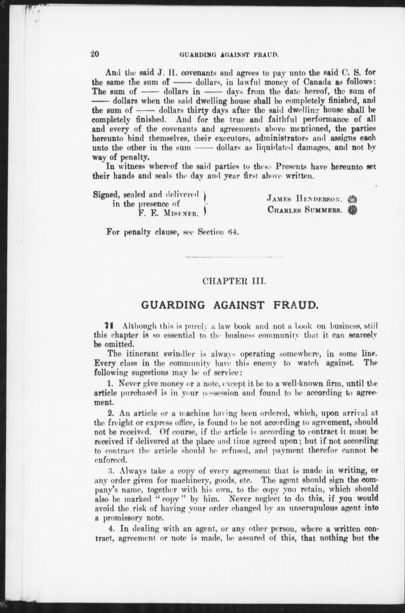 Digest of the mercantile laws of Canada and Newfoundland : the technical points and main features of both the common and statute laws, together with the various legal and business documents in general use, forming a work of ready-reference for magistrates, conveyancers, professional and business men, landowners, contractors, etc. :lawyers will also find it convenient as a condensed and well-classified collection of most vital legal points for the various provinces