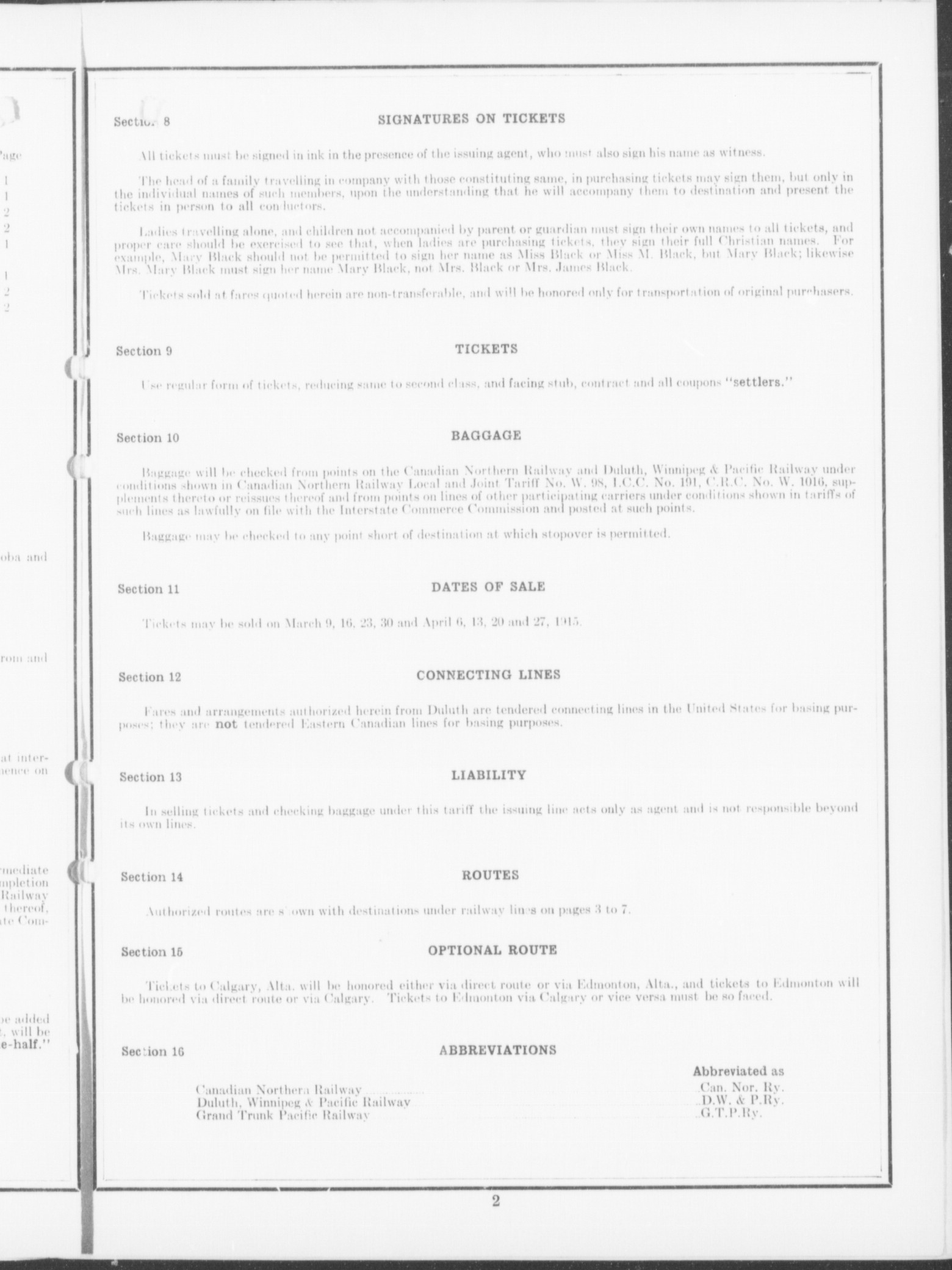 One-way settlers' fares via Fort Frances from Duluth, Minn. to destinations in Alberta, Manitoba and Saskatchewan