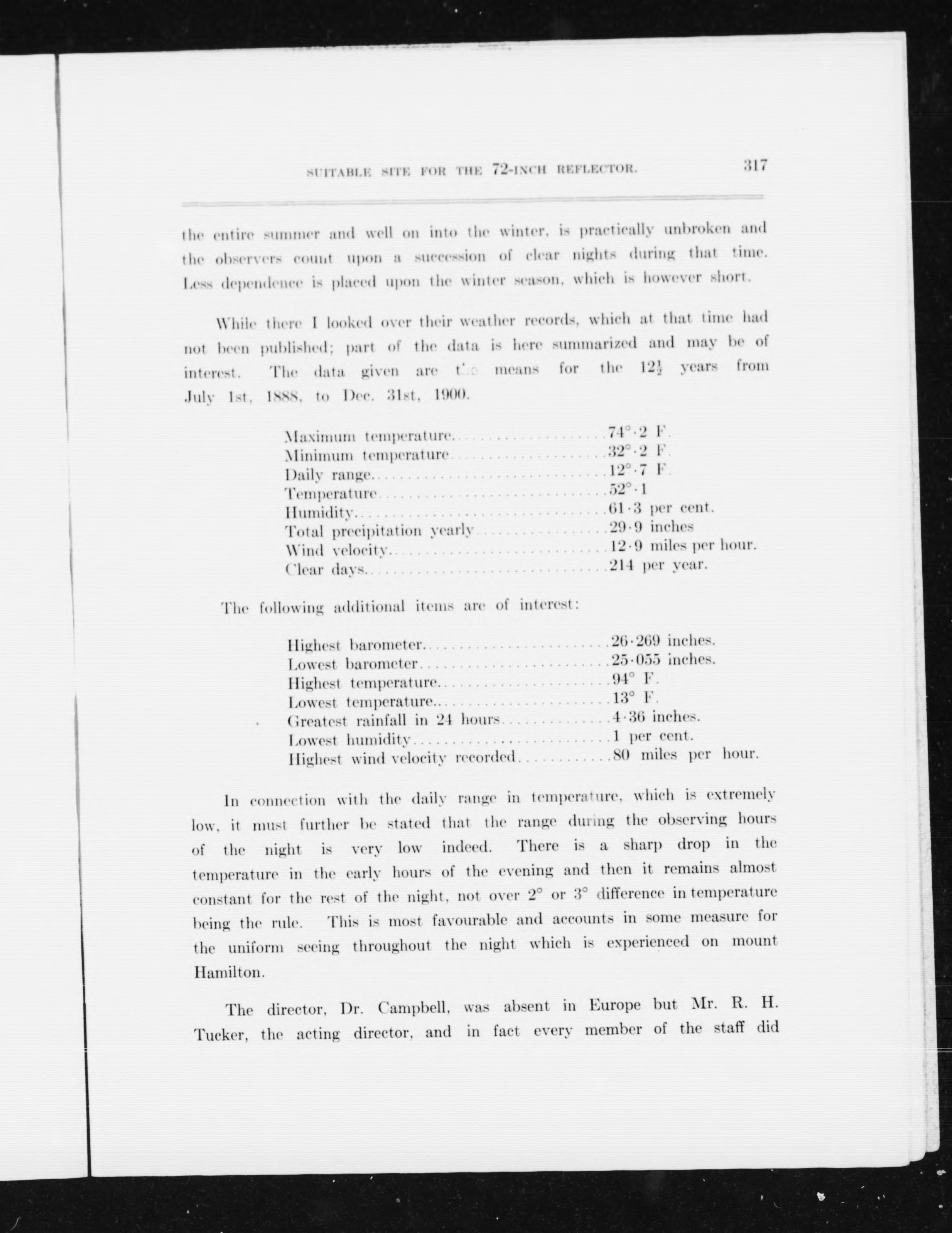 Tests made to ascertain where conditions were most suitable for the 72-inch reflector