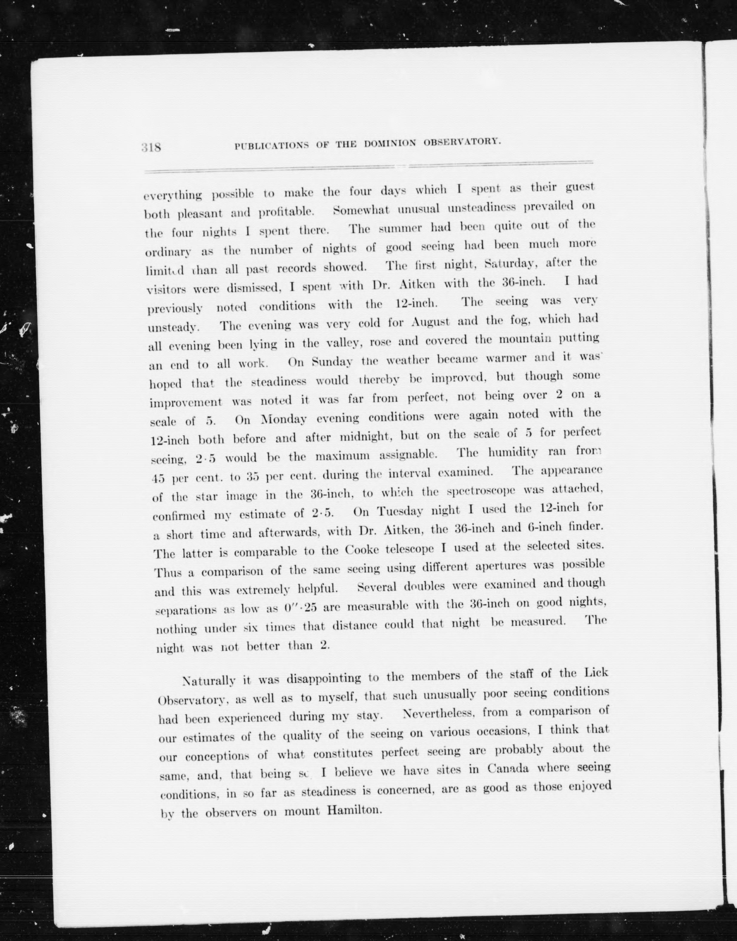 Tests made to ascertain where conditions were most suitable for the 72-inch reflector