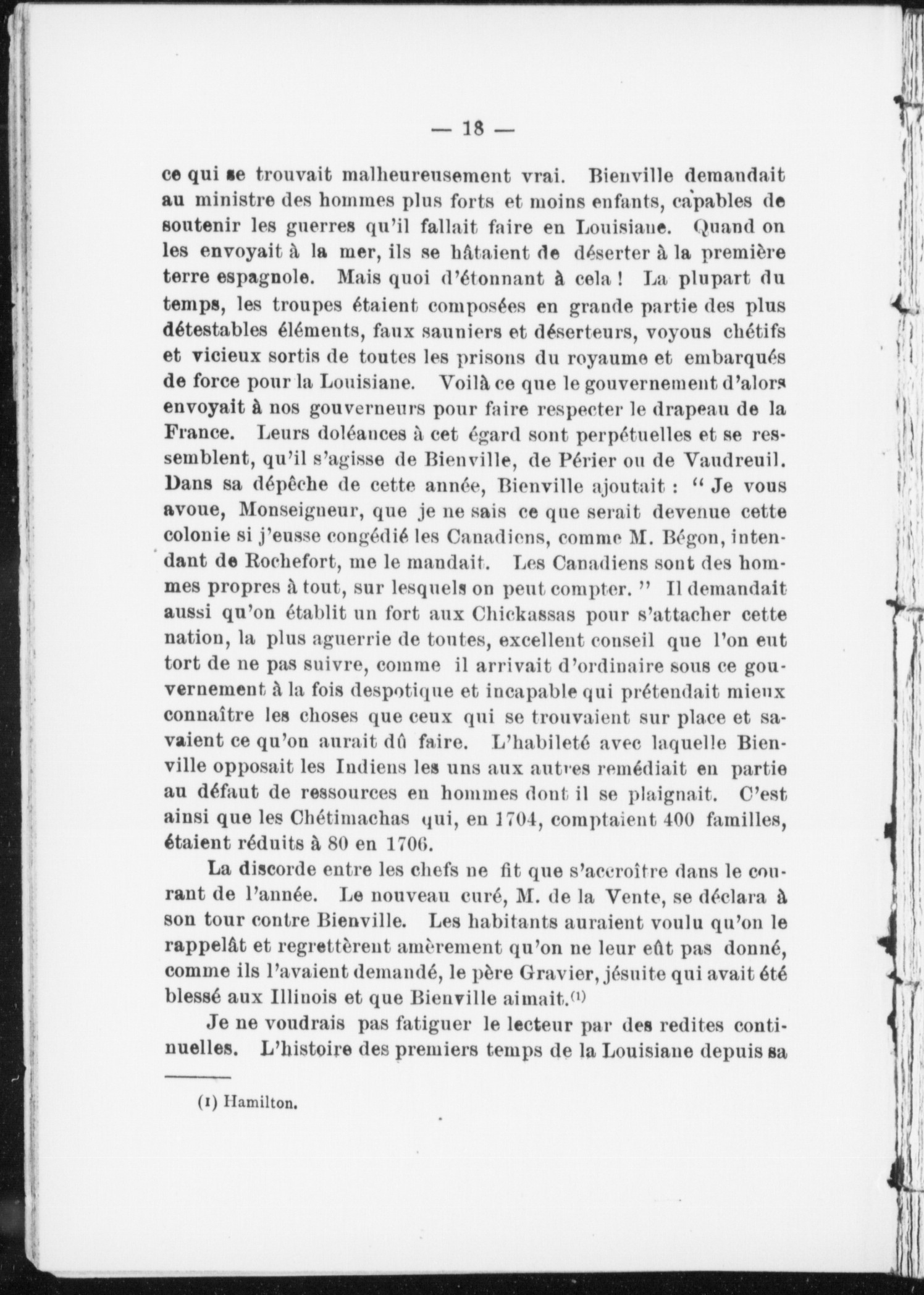 - De la fondation à l'administration de Crozat, 1699-1712 : Administration de Crozat, 1712-1718 ; De la nomination de Bienville comme gouverneur de la Louisiane jusqu'à son rappel, 1718-1726 ; Du rappel de Bienville à la Louisiane jusqu'à sa mort, 1733-1767
