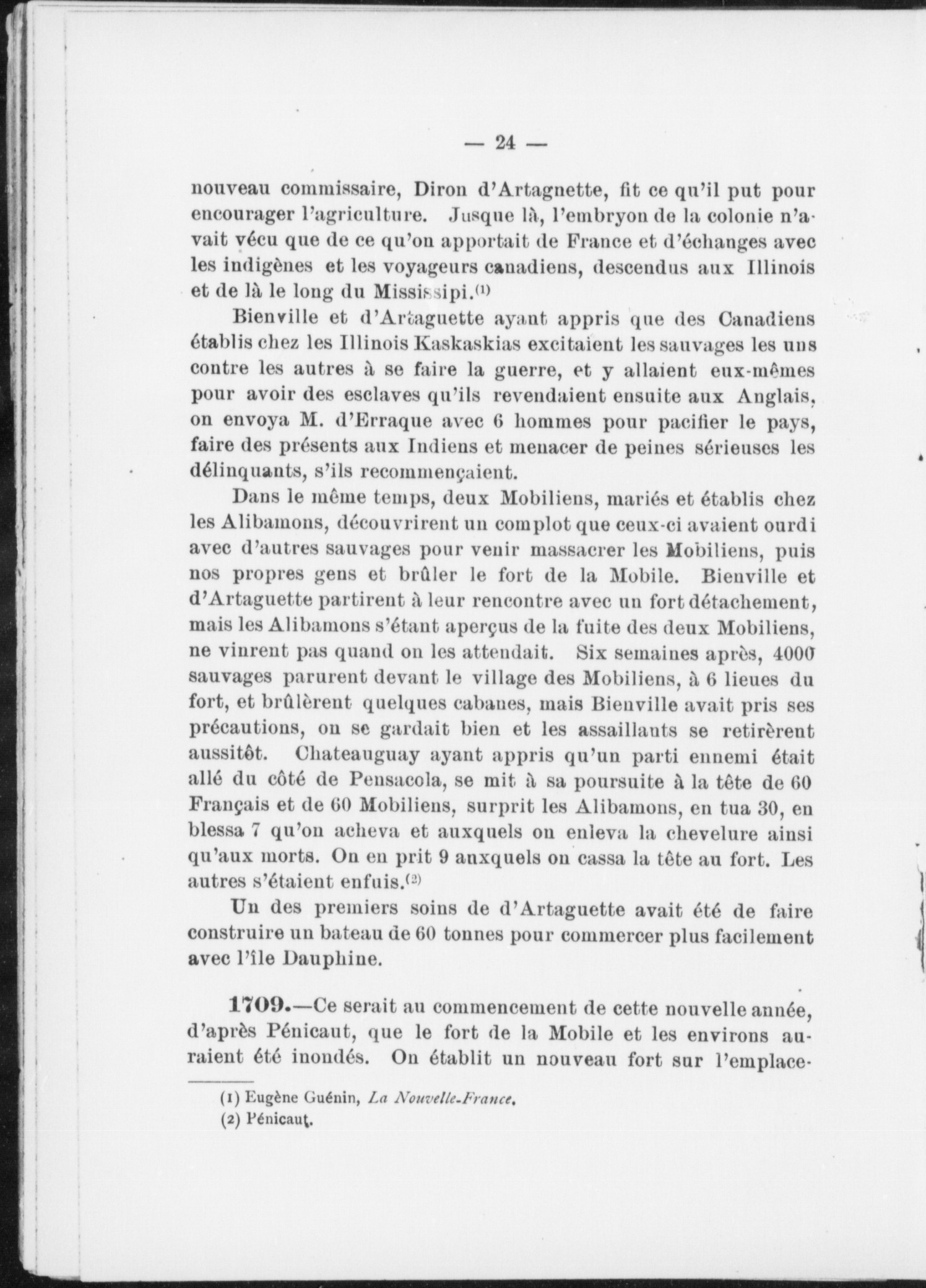 - De la fondation à l'administration de Crozat, 1699-1712 : Administration de Crozat, 1712-1718 ; De la nomination de Bienville comme gouverneur de la Louisiane jusqu'à son rappel, 1718-1726 ; Du rappel de Bienville à la Louisiane jusqu'à sa mort, 1733-1767