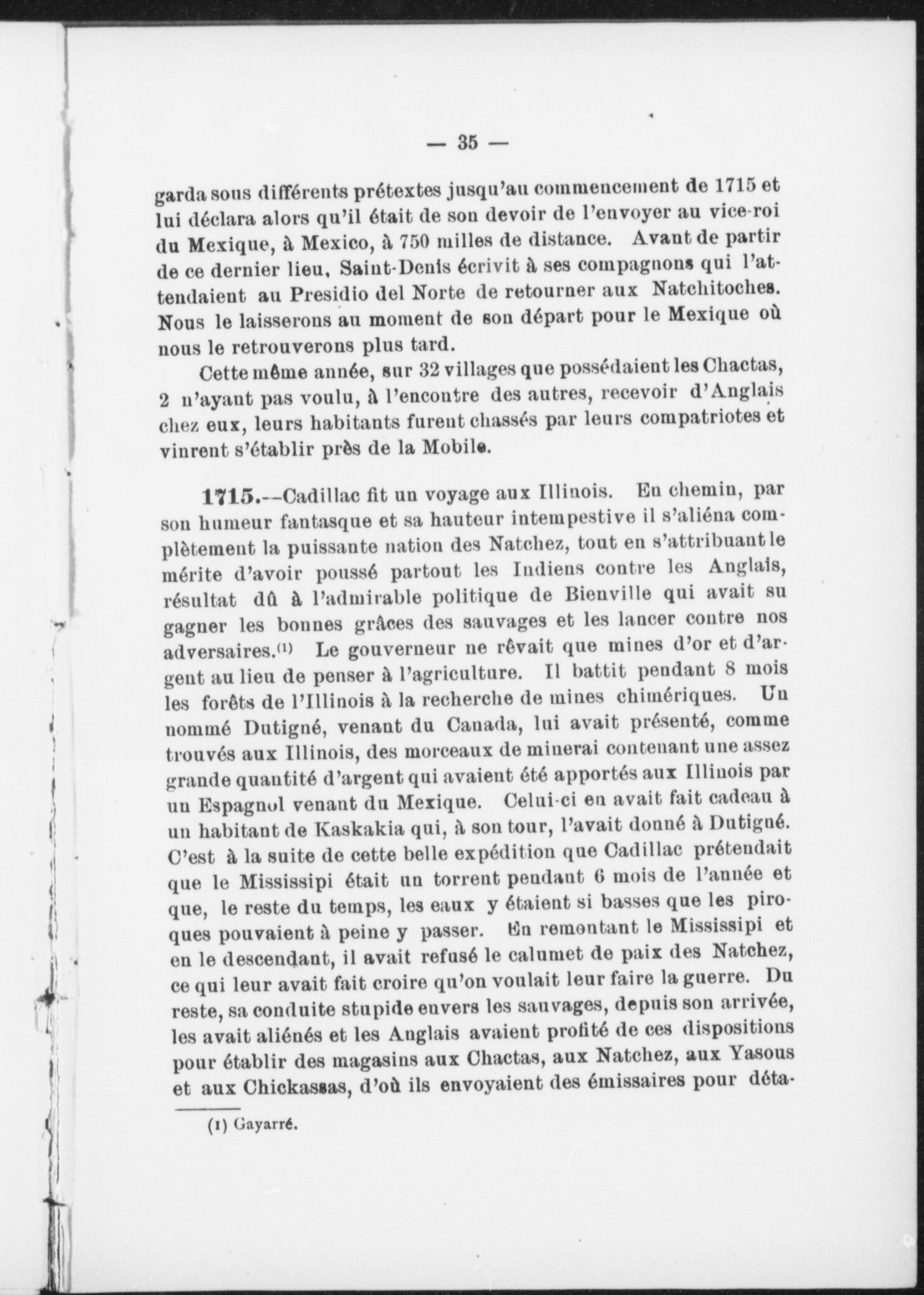 - De la fondation à l'administration de Crozat, 1699-1712 : Administration de Crozat, 1712-1718 ; De la nomination de Bienville comme gouverneur de la Louisiane jusqu'à son rappel, 1718-1726 ; Du rappel de Bienville à la Louisiane jusqu'à sa mort, 1733-1767