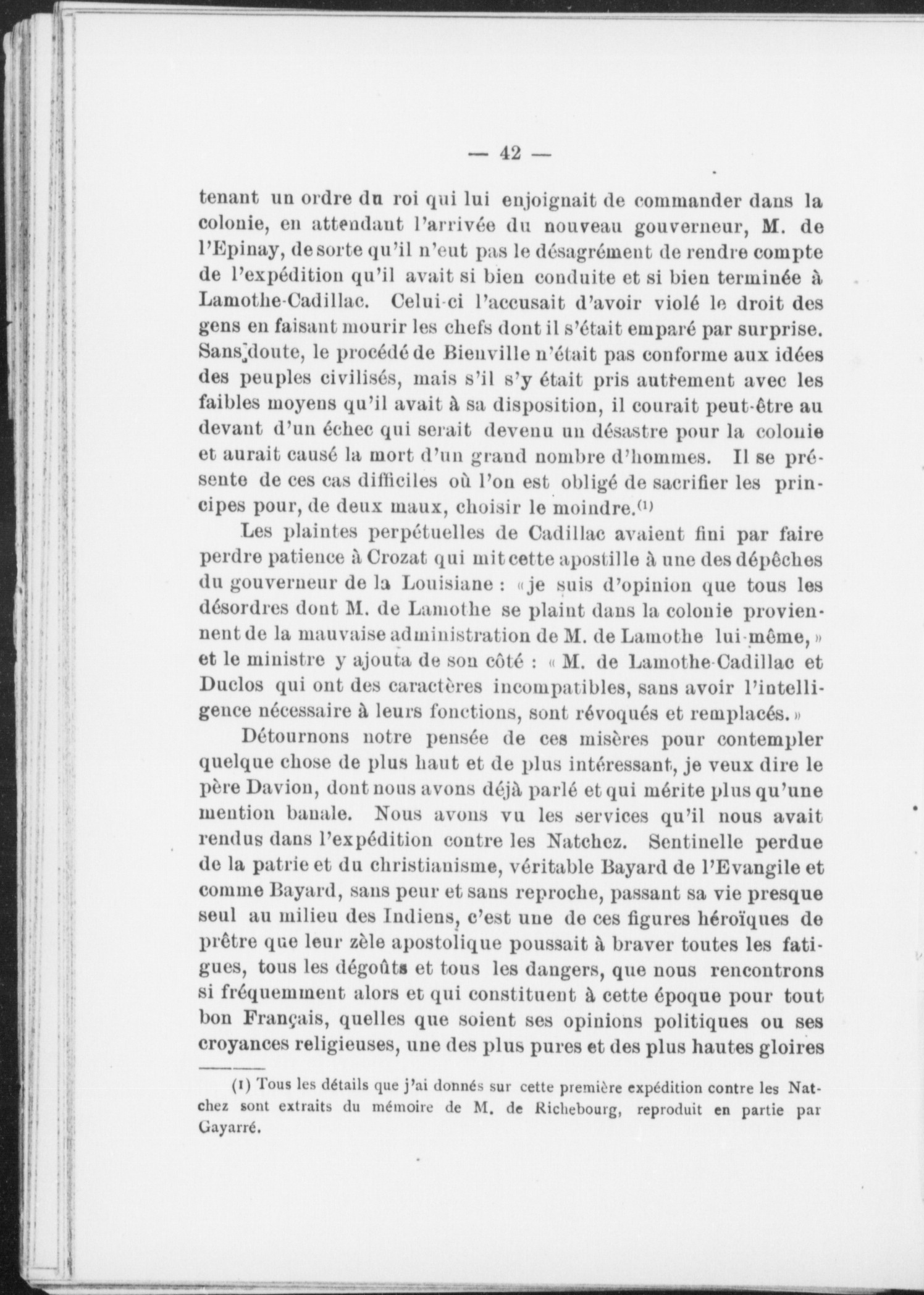 - De la fondation à l'administration de Crozat, 1699-1712 : Administration de Crozat, 1712-1718 ; De la nomination de Bienville comme gouverneur de la Louisiane jusqu'à son rappel, 1718-1726 ; Du rappel de Bienville à la Louisiane jusqu'à sa mort, 1733-1767