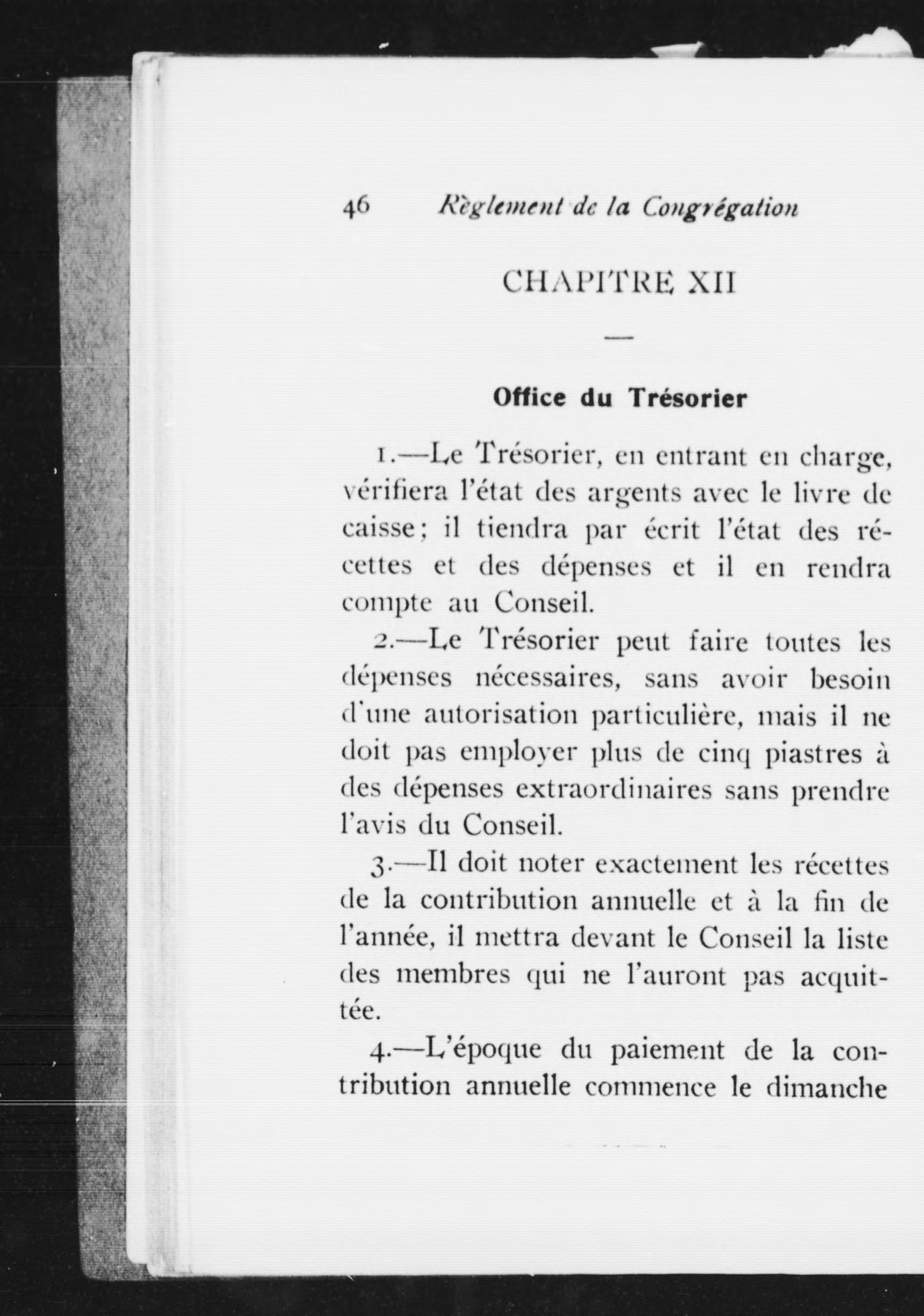 Règlement de la Congrégation des hommes de la paroisse de Notre- Dame-de-Jacques-Cartier, Québec