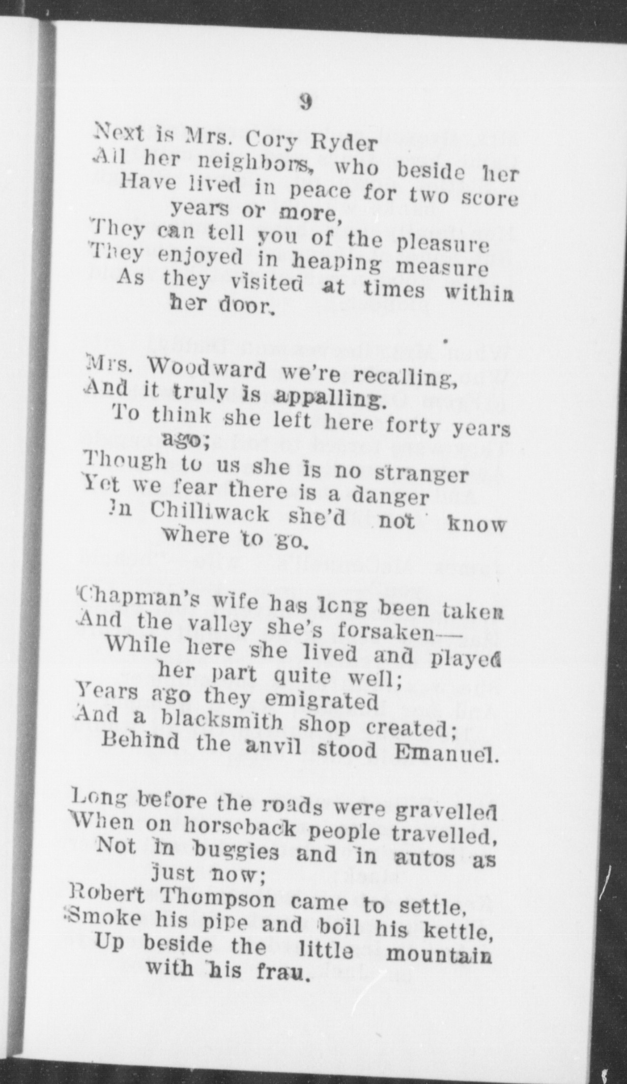 Femmes -- Colombie-Britannique -- Chilliwack -- Poésie. - Document original