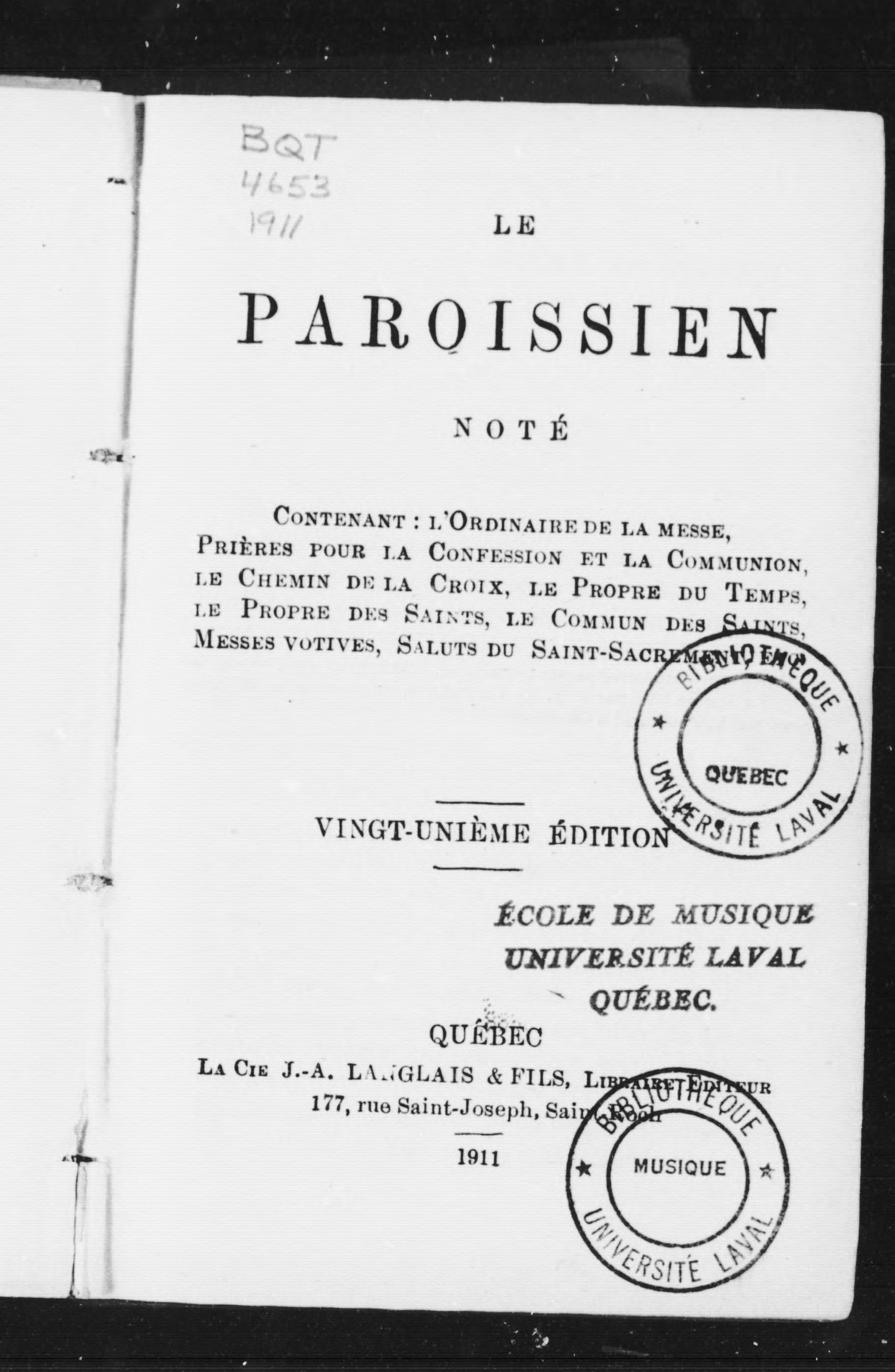 Québec : La Cie J.-A. Langlais & fils, Libraire-Éditeur, 1911.