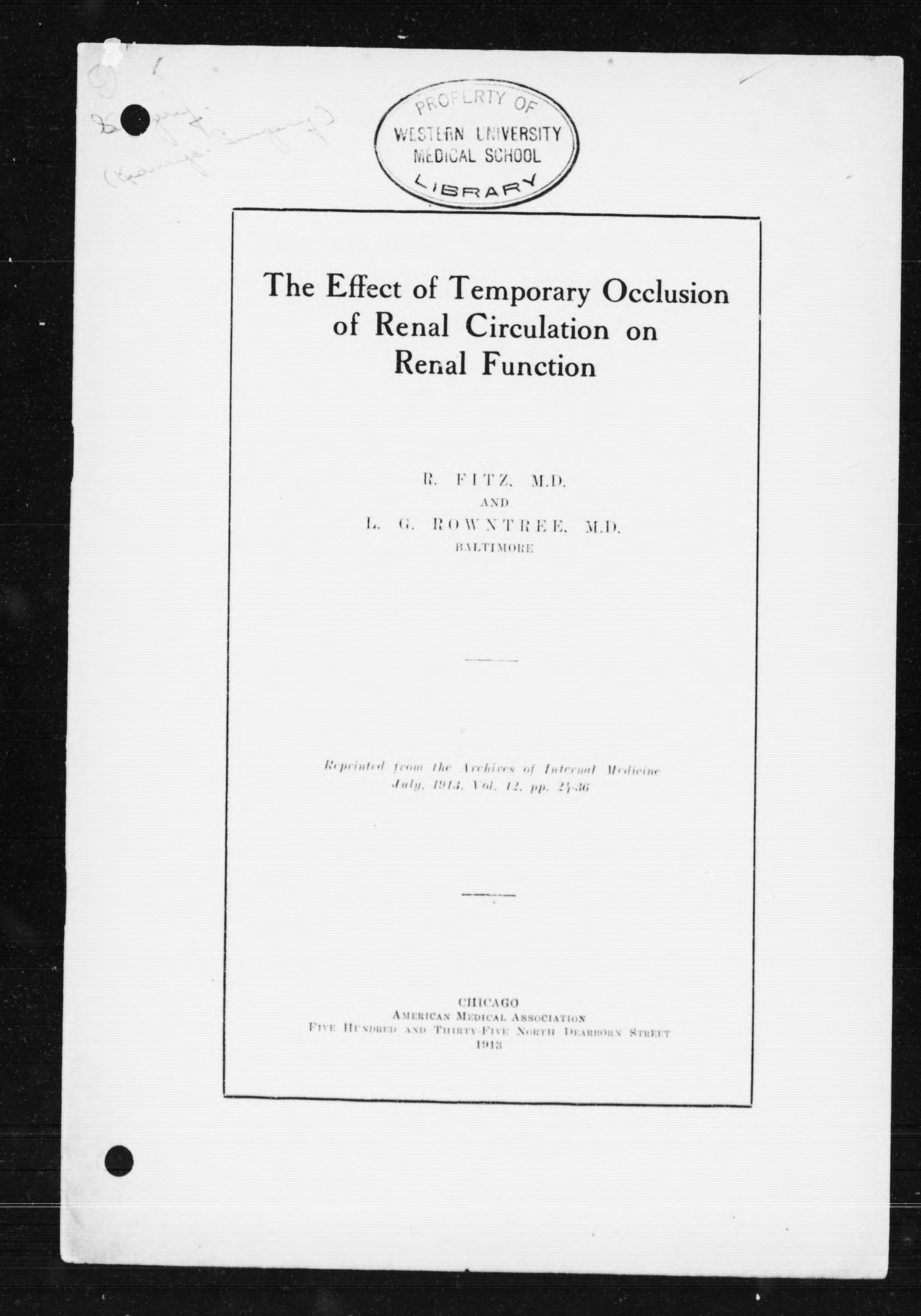 "Reprinted from the Archives of Internal Medicine July, 1913, Vol. 12, pp. 24-36."