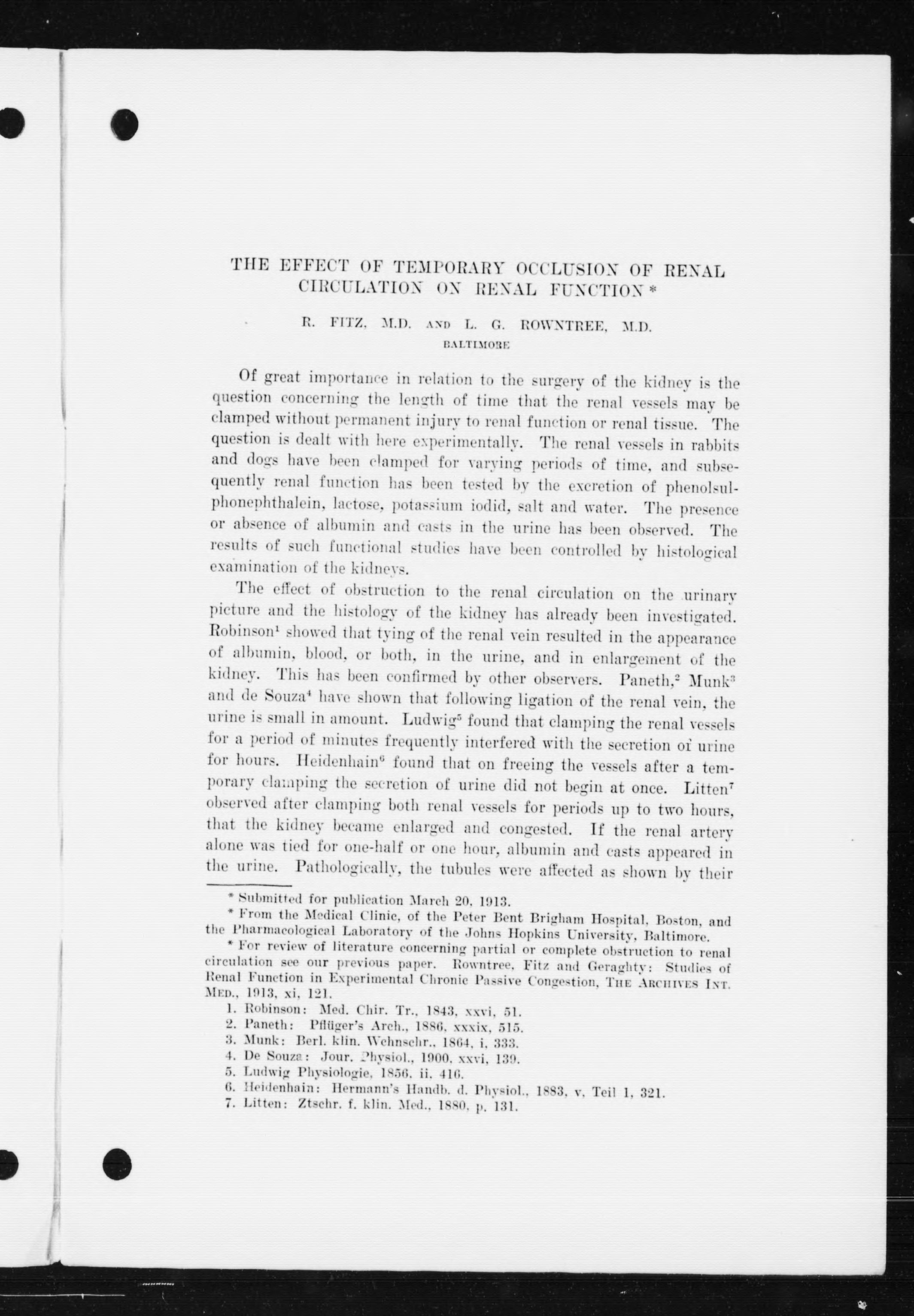 The effect of temporary occlusion of renal circulation on renal function - Adresse bibliographique
