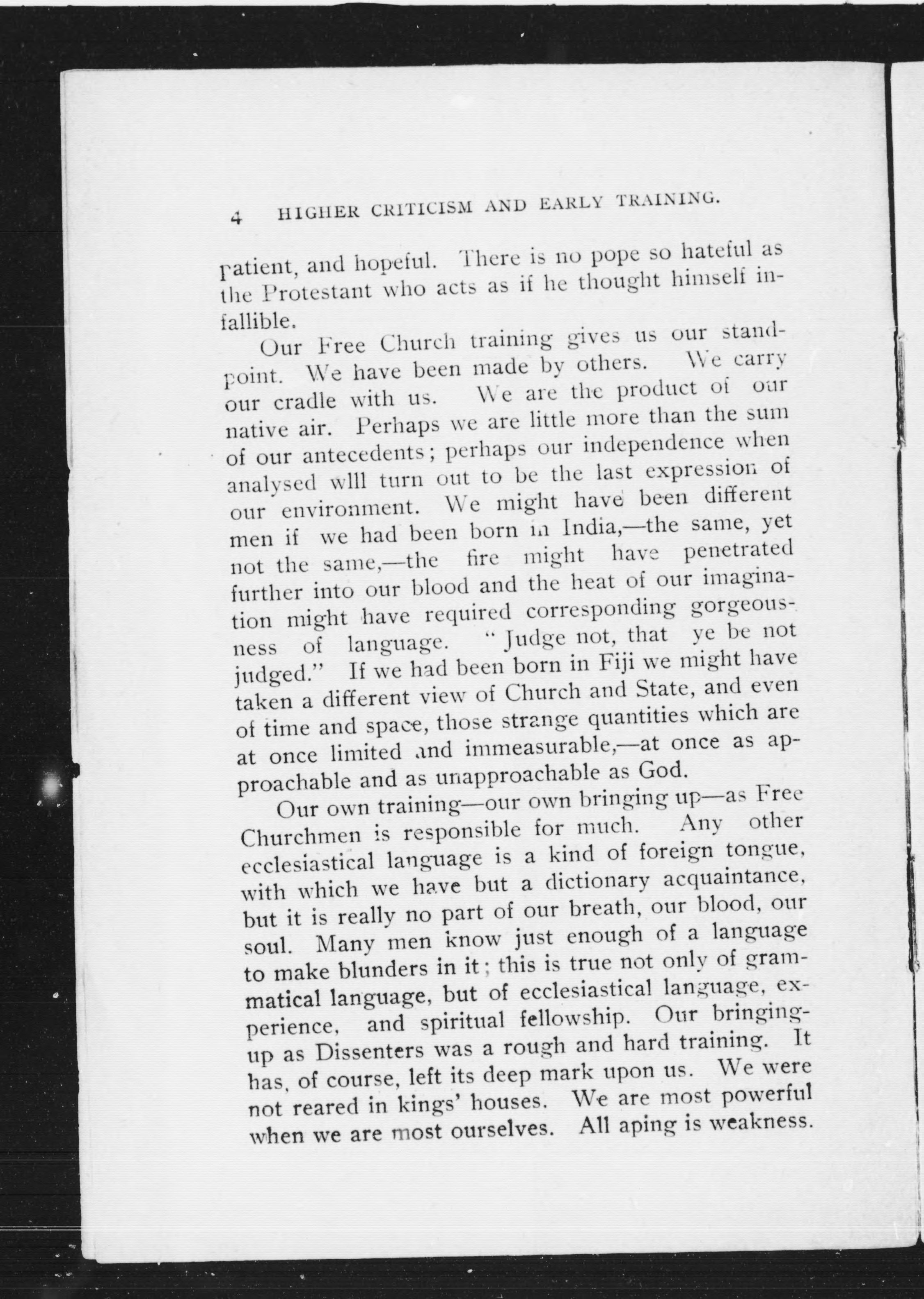 Higher criticism and early training : the last address of the late Dr. Parker of the City Temple, London, Eng. - Published