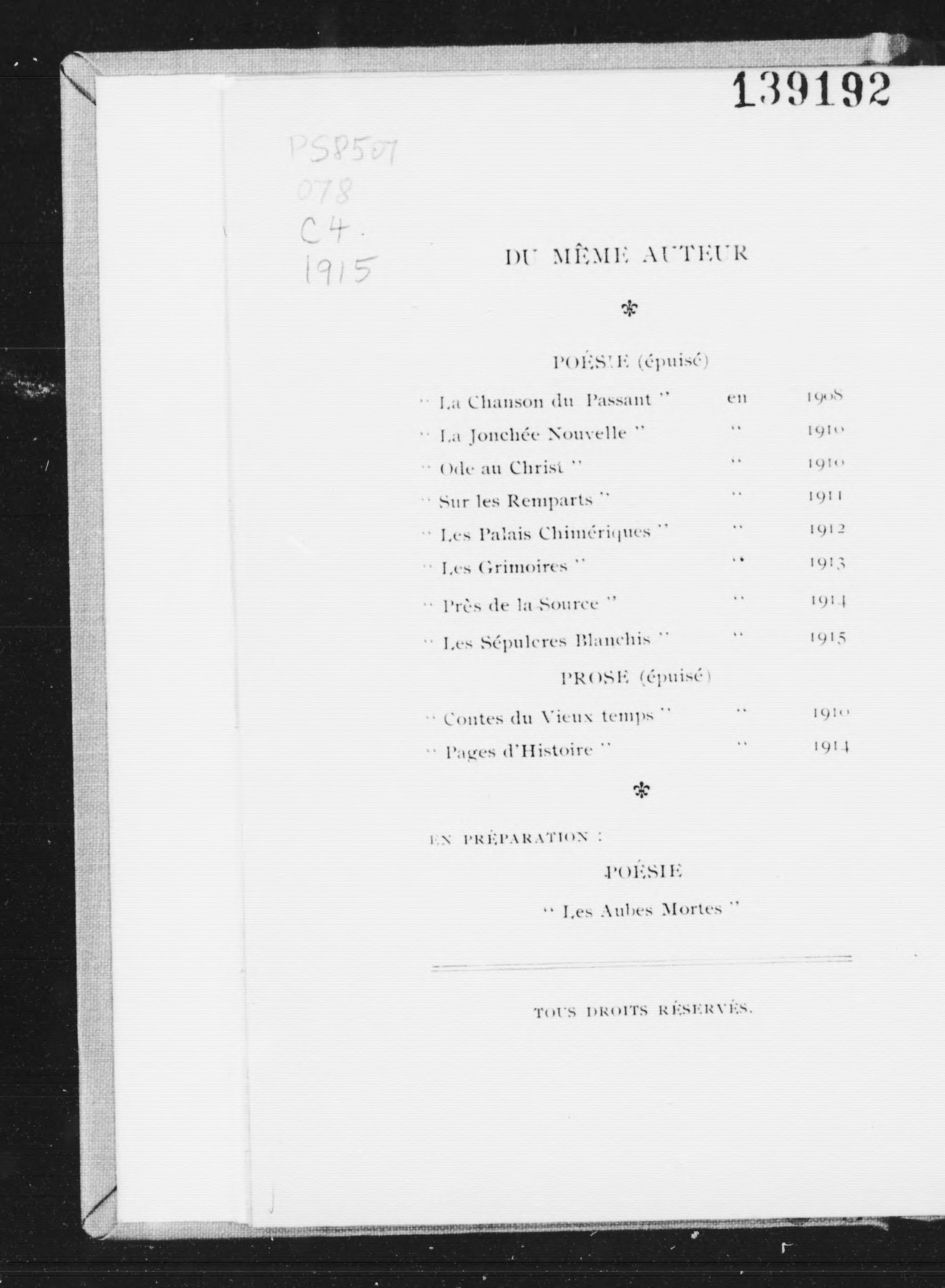 Québec : [éditeur non identifié], 1915.; 147 images, 145 avec recherche en texte intégral