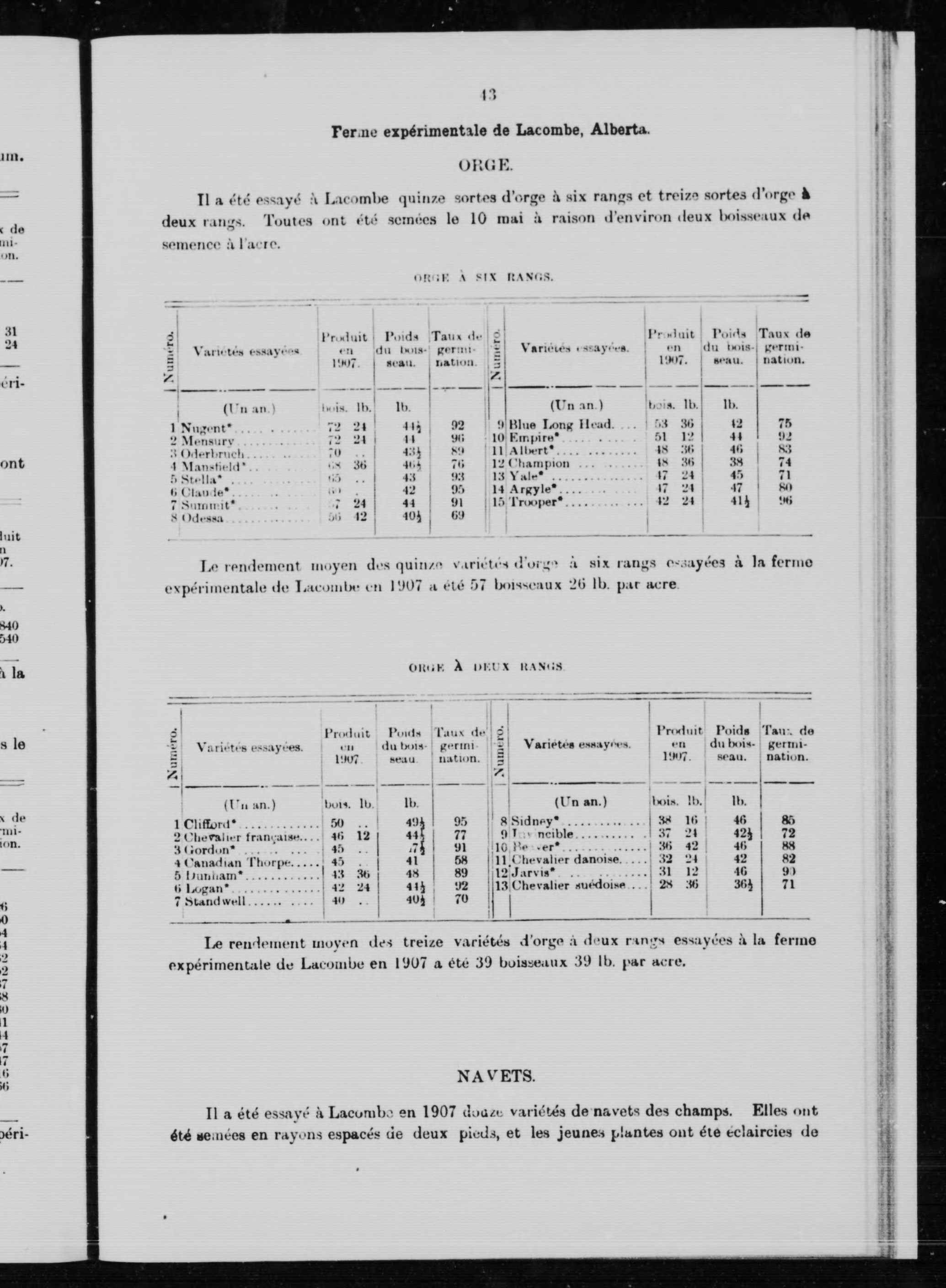 Résultats d'essais de grains, de maïs-fourrage, de plantes-racines et de pommes de terre qui ont été faits en 1907 aux fermes expérimentales de l'état /
