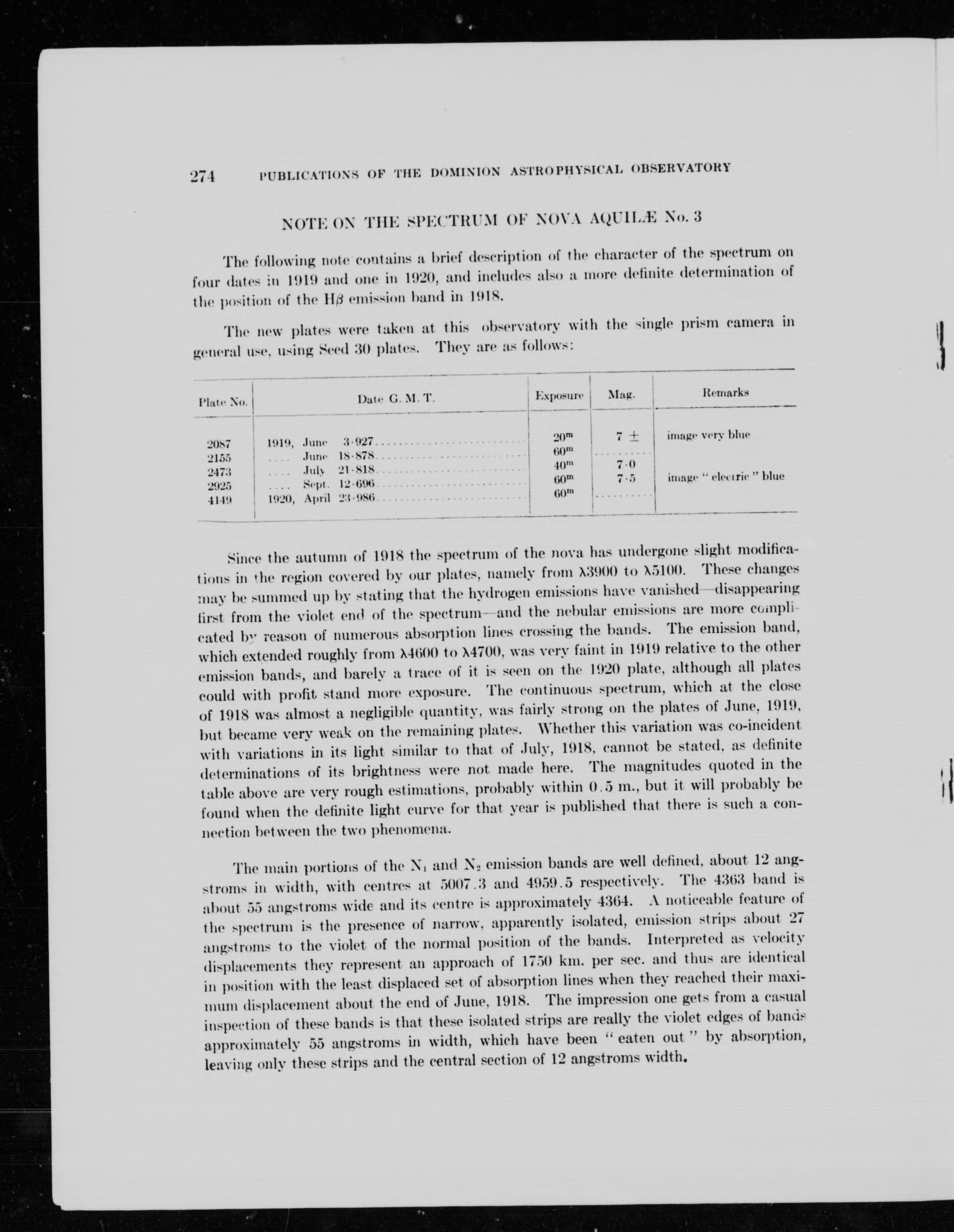 The spectrum of Nova Cygni 1920 with a note on the spectrum of Nova Aquilae No. 3 - Adresse bibliographique