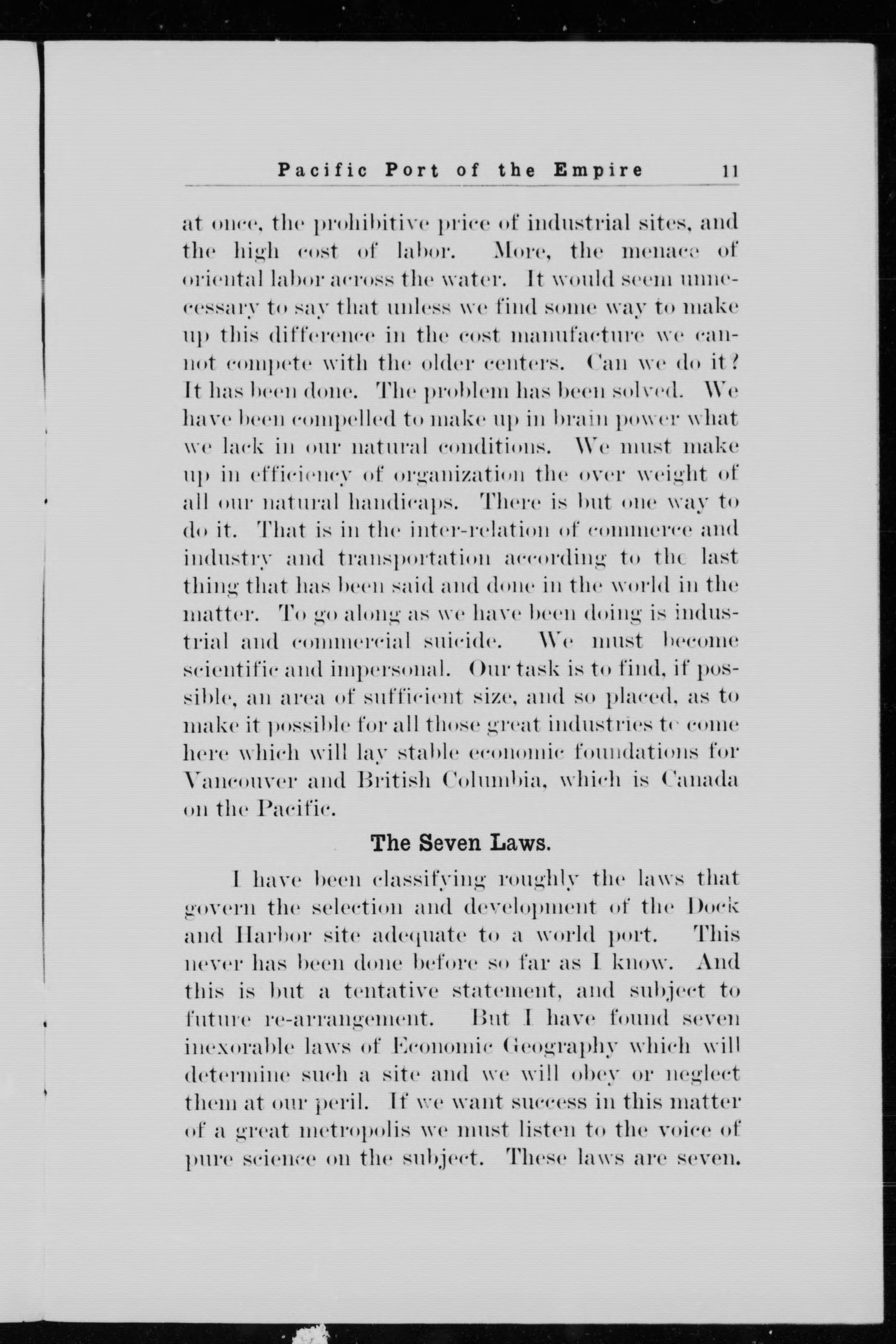 Vancouver, the Pacific port of the Empire : an address at the Vancouver Progress Club, Wednesday, August 20th, 1913 - Published