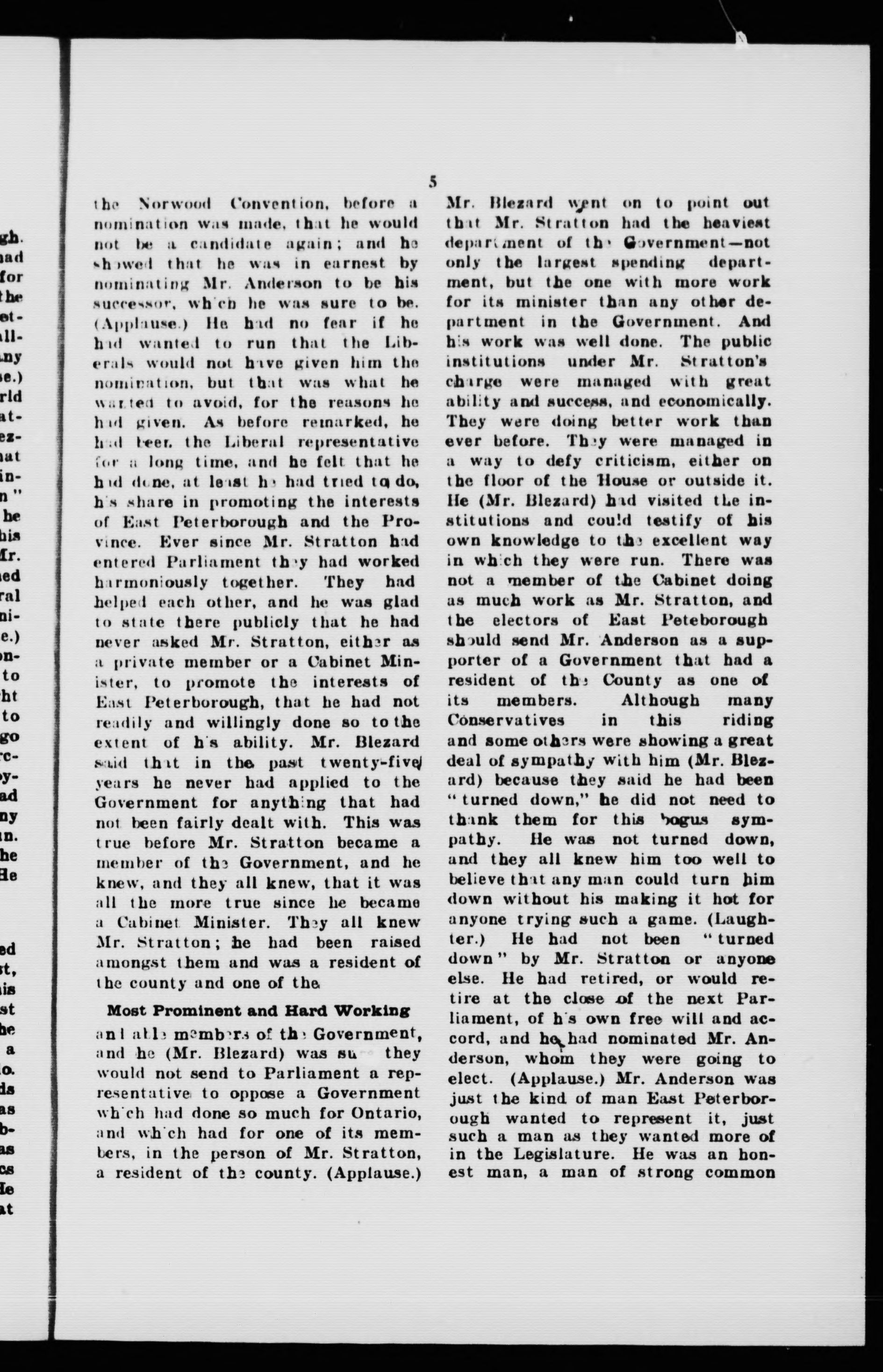 Addresses of Mr. William Anderson (Liberal candidate for East Peterborough), Mr. Thomas Blezard (member provincial parliament), Hon. J. R. Stratton (provincial secretary), on the local situation, Liberal record and the Progressive policy of the Ross government and its timber policy and practice delivered at Westwood, November 11th 1901 .