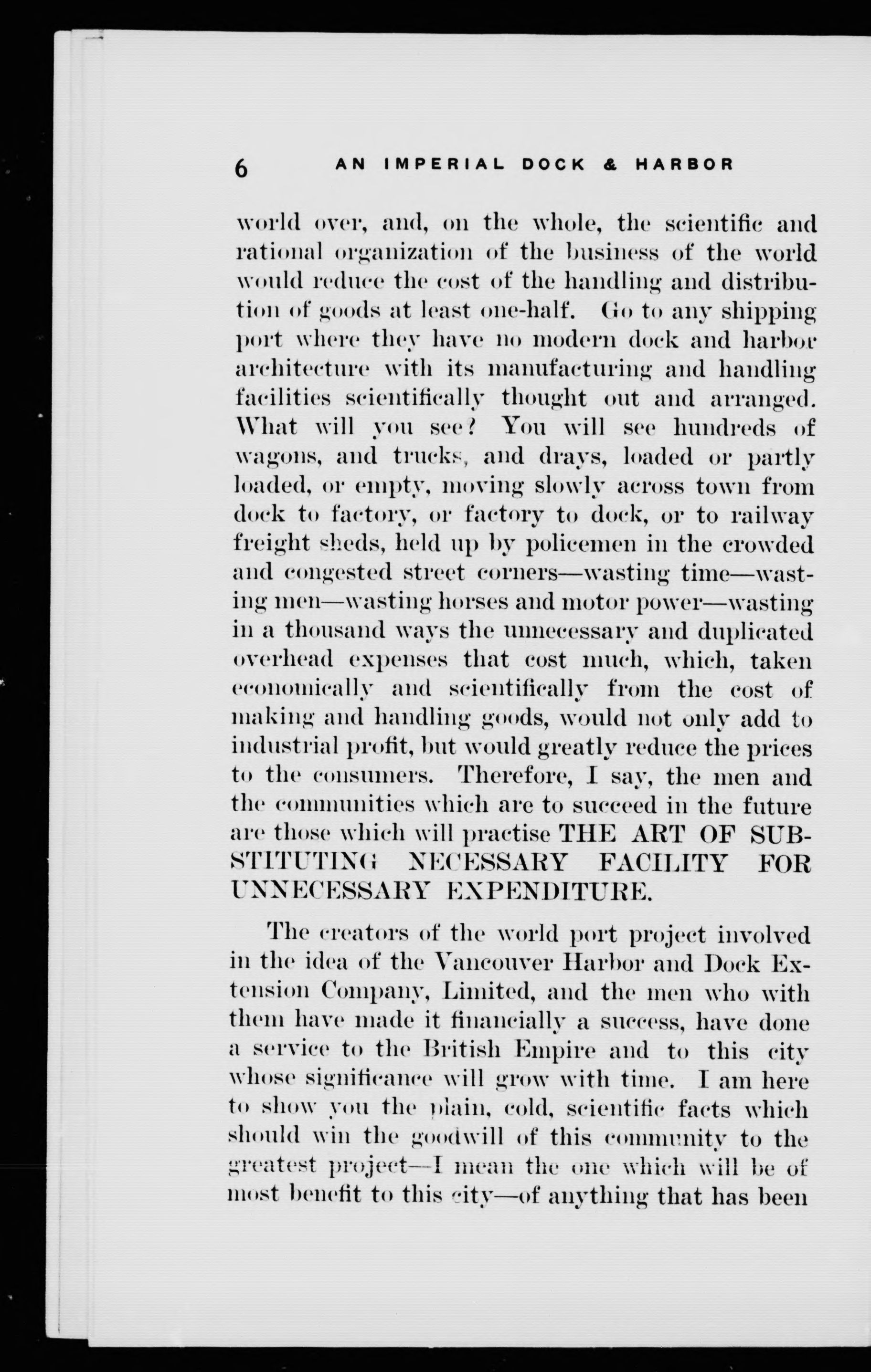 An imperial dock & harbor enterprise for Vancouver : an address at the Vancouver Board of Trade, Tuesday, October 14th, 1913