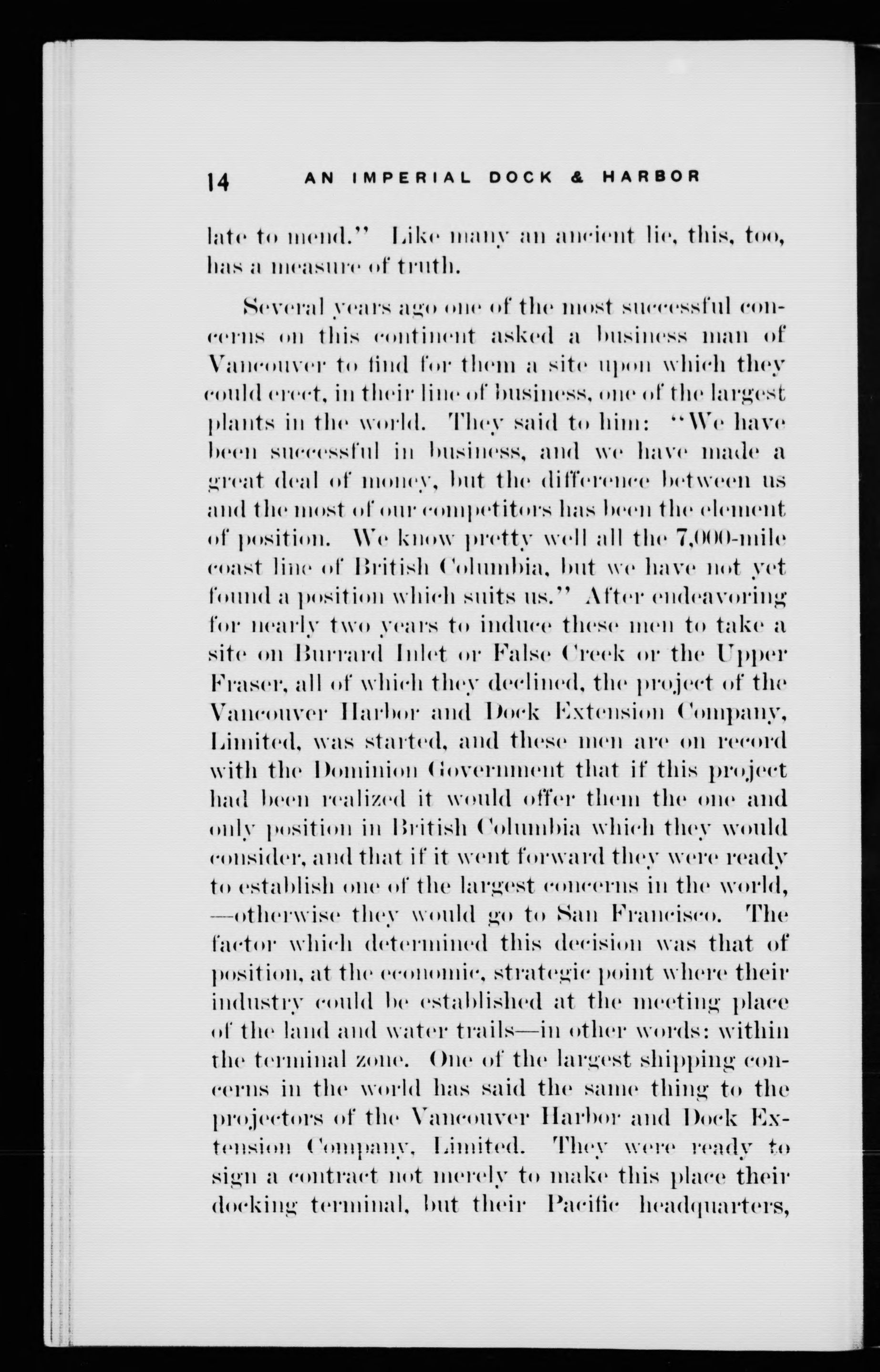 An imperial dock & harbor enterprise for Vancouver : an address at the Vancouver Board of Trade, Tuesday, October 14th, 1913