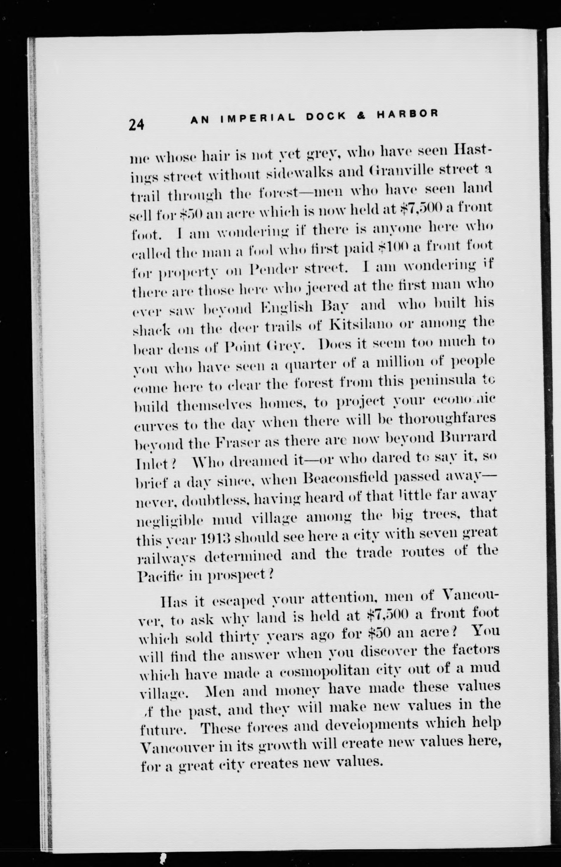 An imperial dock & harbor enterprise for Vancouver : an address at the Vancouver Board of Trade, Tuesday, October 14th, 1913 - Adresse bibliographique