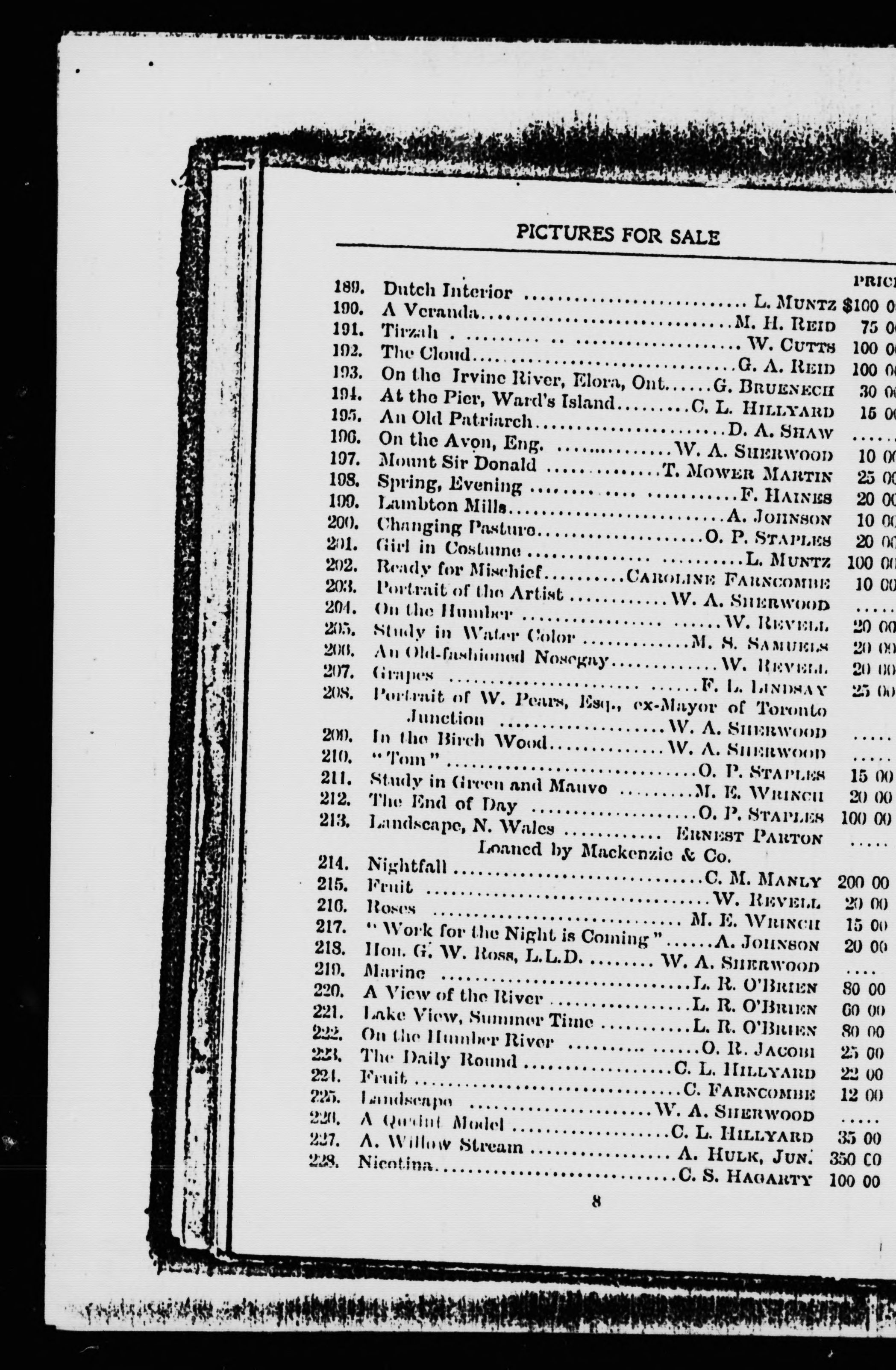 "Under the Management of the Ontario Society of Artists, Instituted 1872."