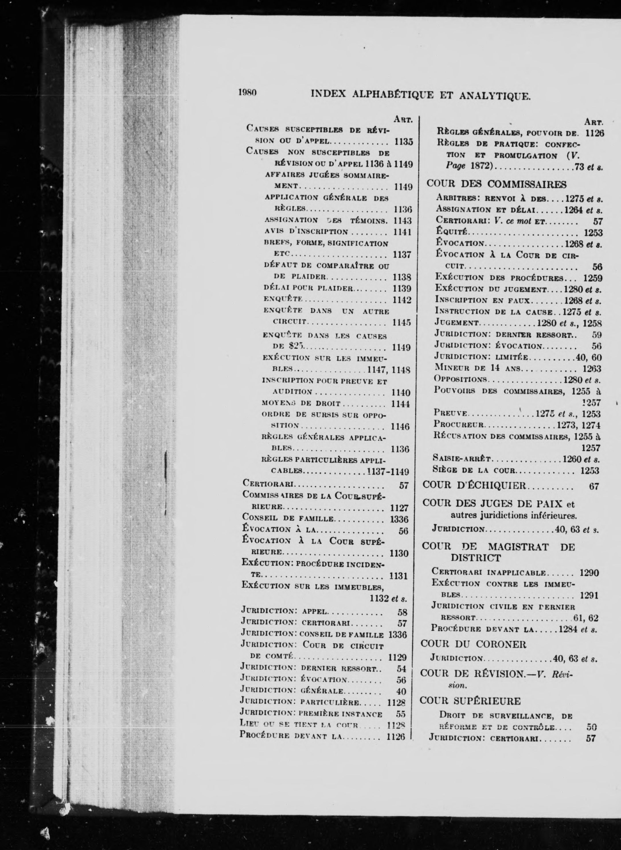 "Contenant la jurisprudence sous chaque article et accompagné des Règles de Pratique annotées des tribunaux de la Province de Québec, du Rapport des Commissaires chargés de la révision du Code, et de la "Loi relative à l'organisation et à la compétence des tribunaux de juridiction civile" (10 Geo. V, c. 79)."