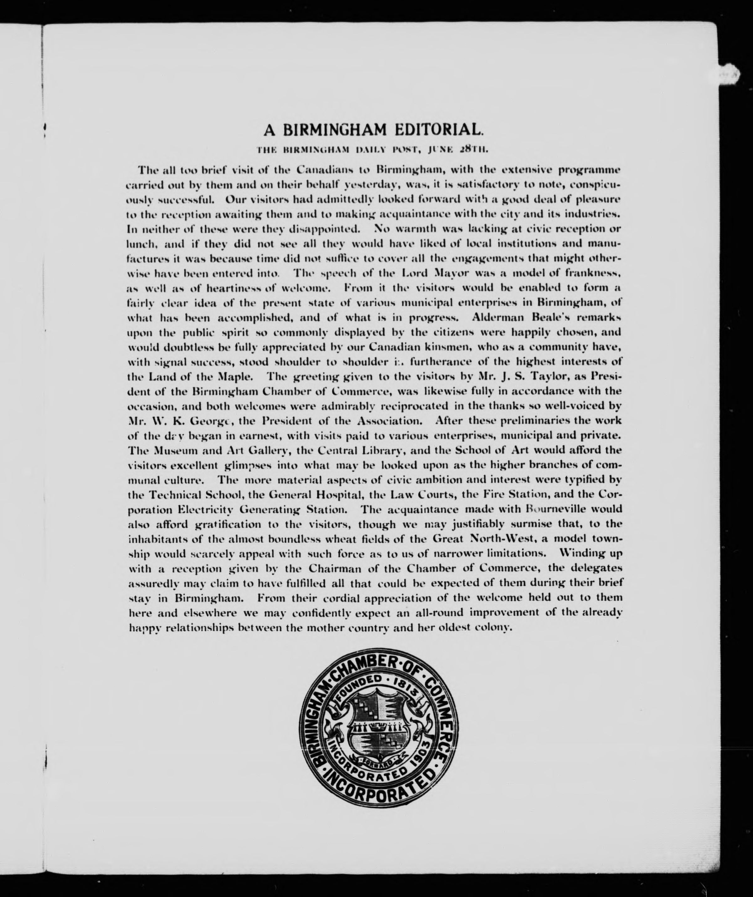 Official souvenir : visit of the Canadian Manufacturers to Great Britain, June-July, nineteen hundred and five