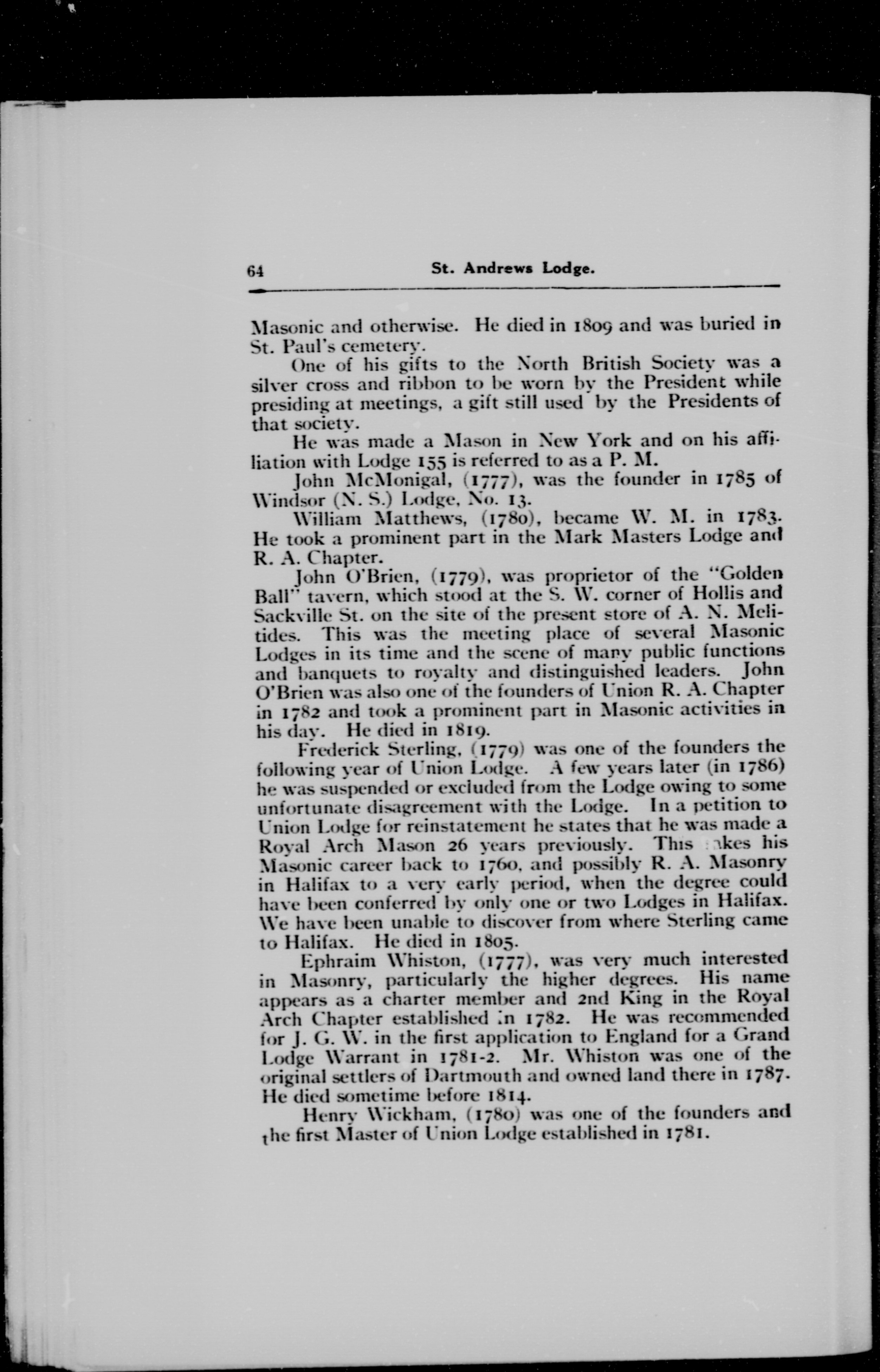 Francs-maçons. St. Andrew's Lodge, no. 1 (Halifax, N.-É.)