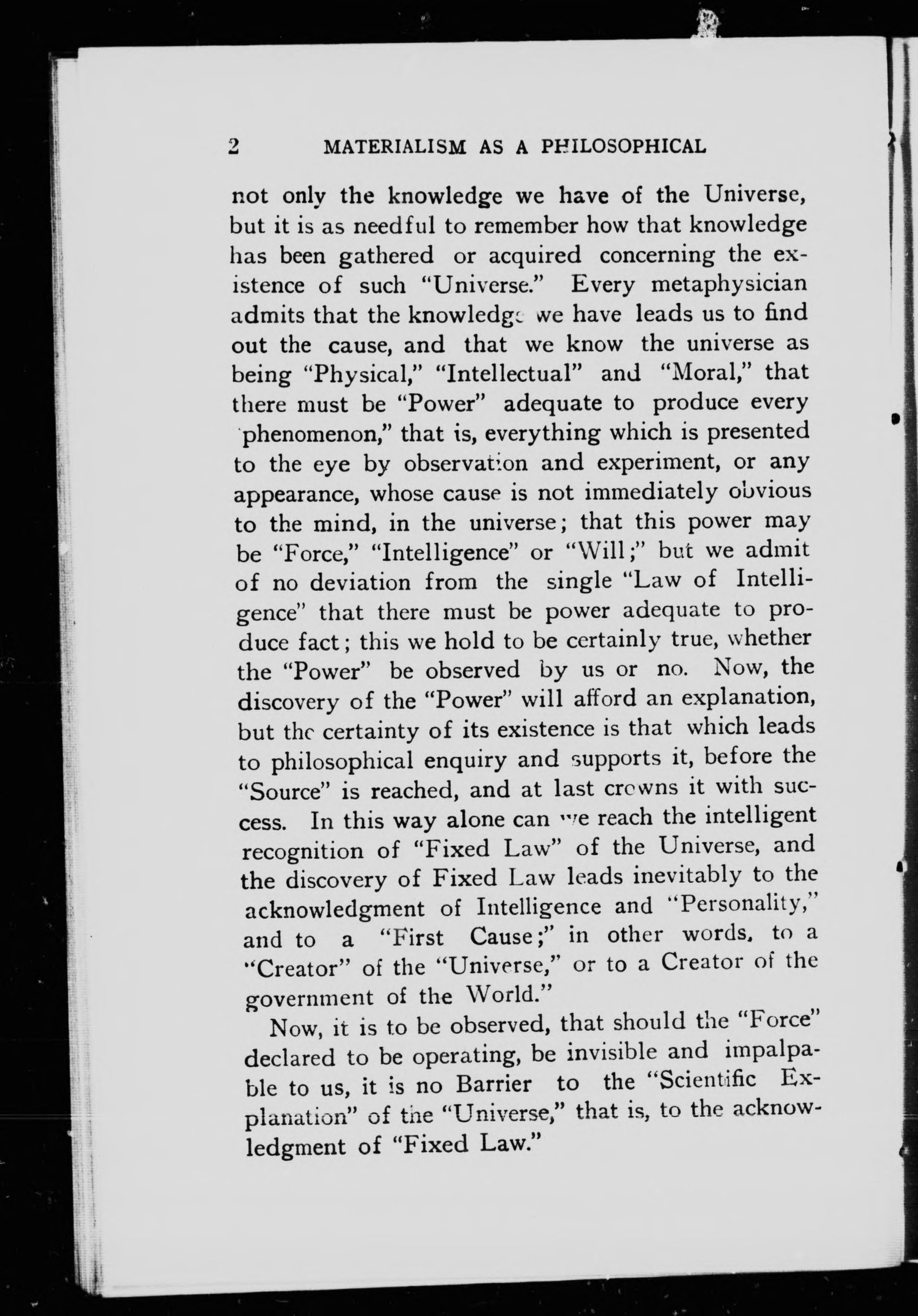 Materialism as a philosophical conception of the universe, or Hume vindicated