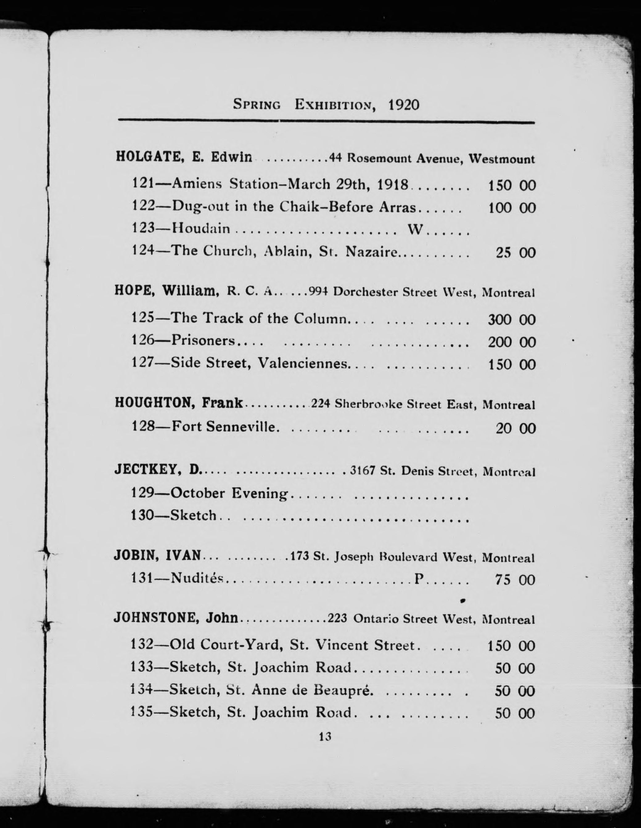 Catalogue of the thirty-seventh spring exhibition to be held in the galleries from the 25th March until the 17th April, 1920 .