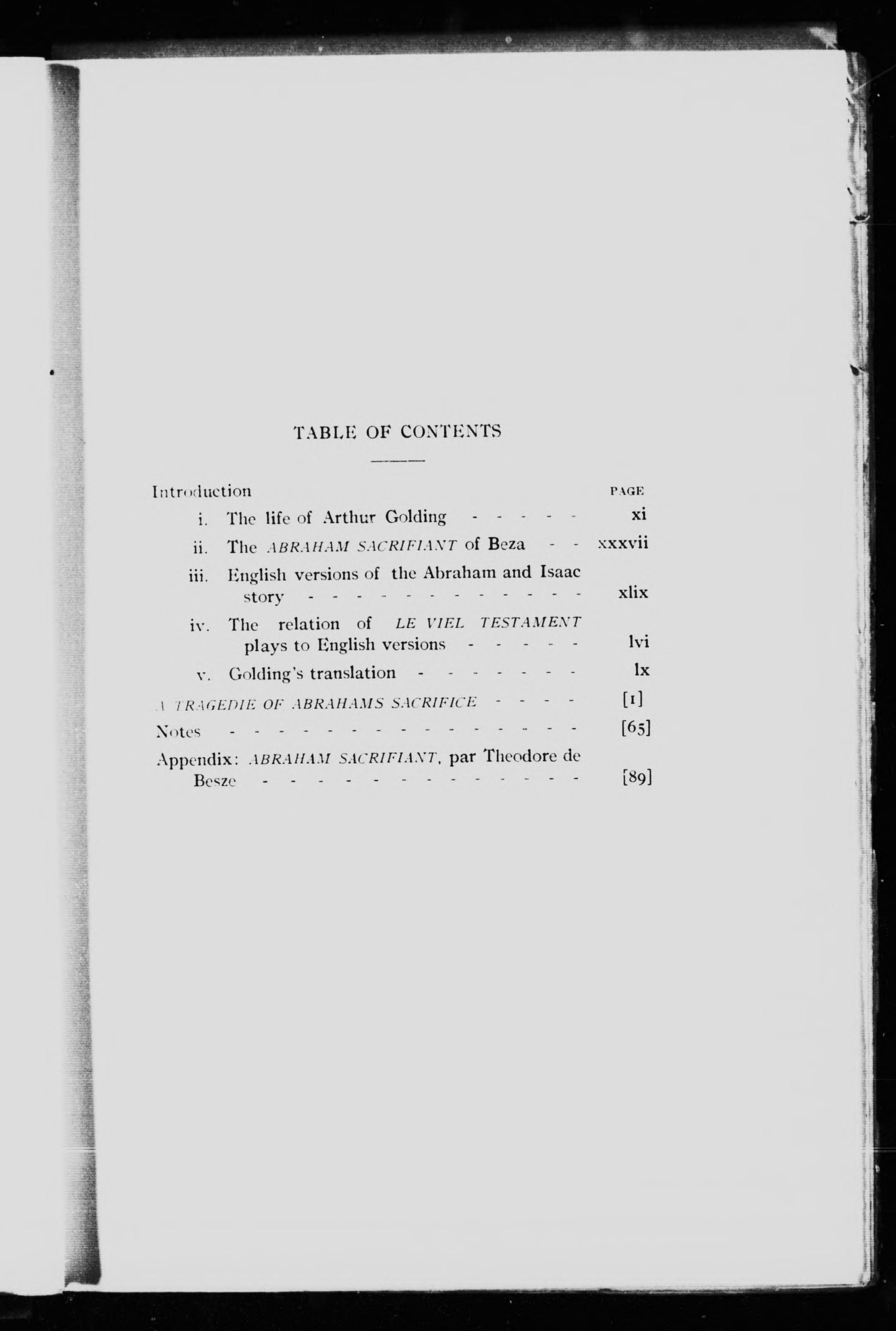 "Appendix: Abraham sacrifiant (reprinted from the edition of J.G. Fick, Geneva, 1874)": p. [89]-127.