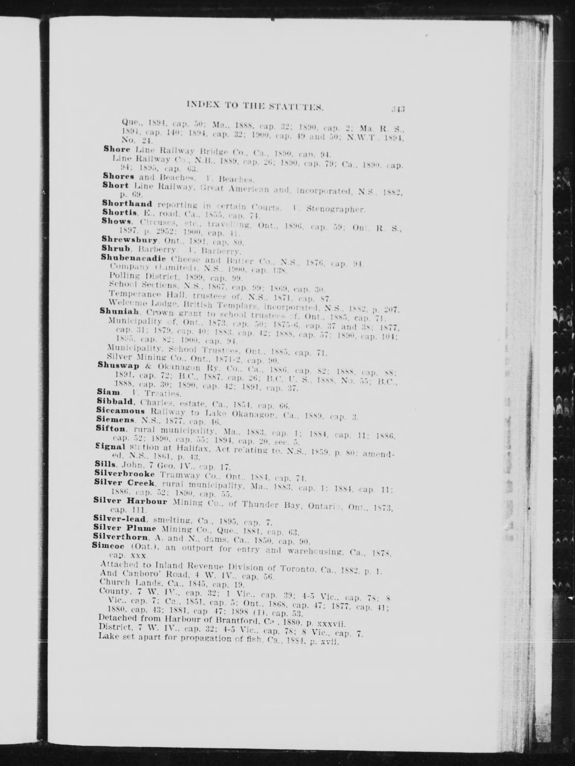 Index to Dominion and provincial statutes from the earliest period down to and including the year 1900