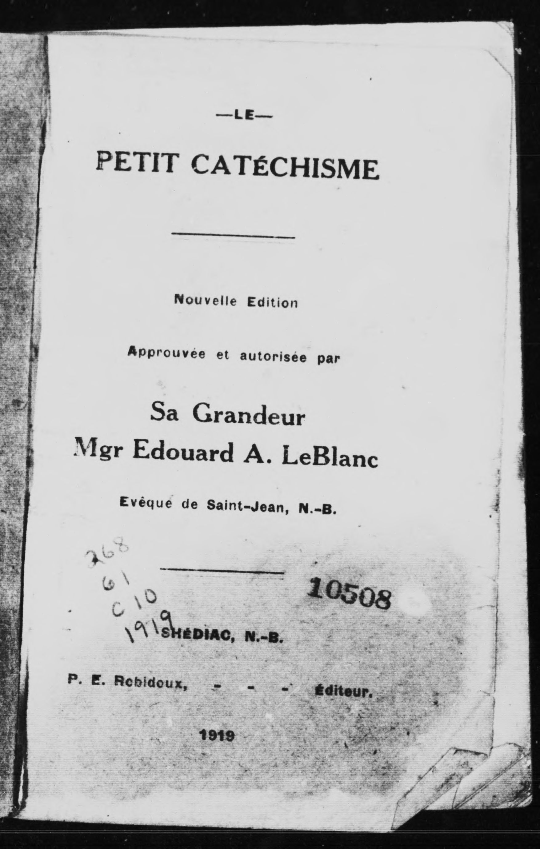 - Shédiac, N.-B. : P.E. Robidoux, 1919.