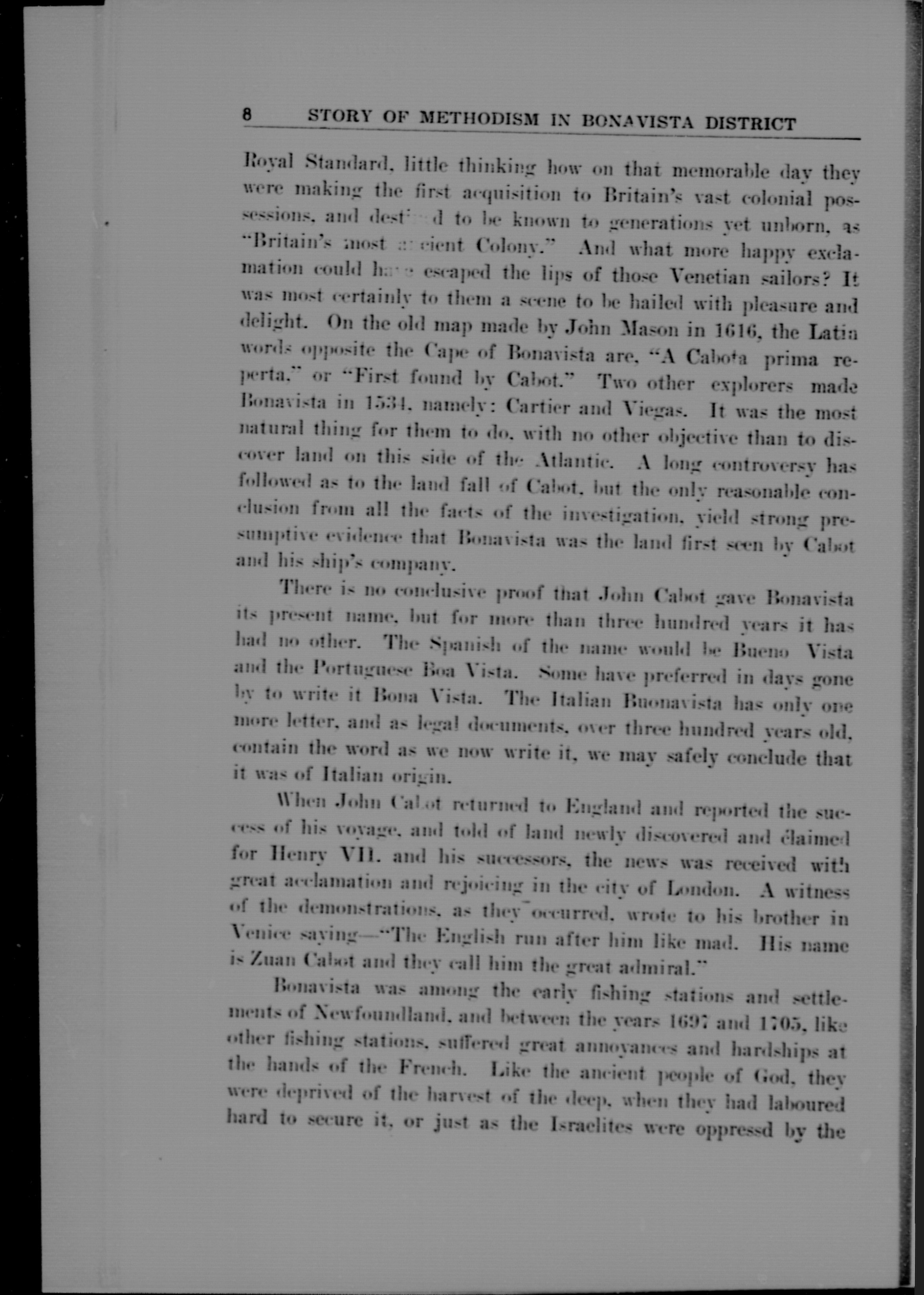 - The story of Methodism in Bonavista and the settlements visited by the early preachers : also including the early history and fisheries, the French raids, the economic, social and moral conditions, the call for the Methodist missionary, the religious awakenings, some proofs that Methodism has justified her existence