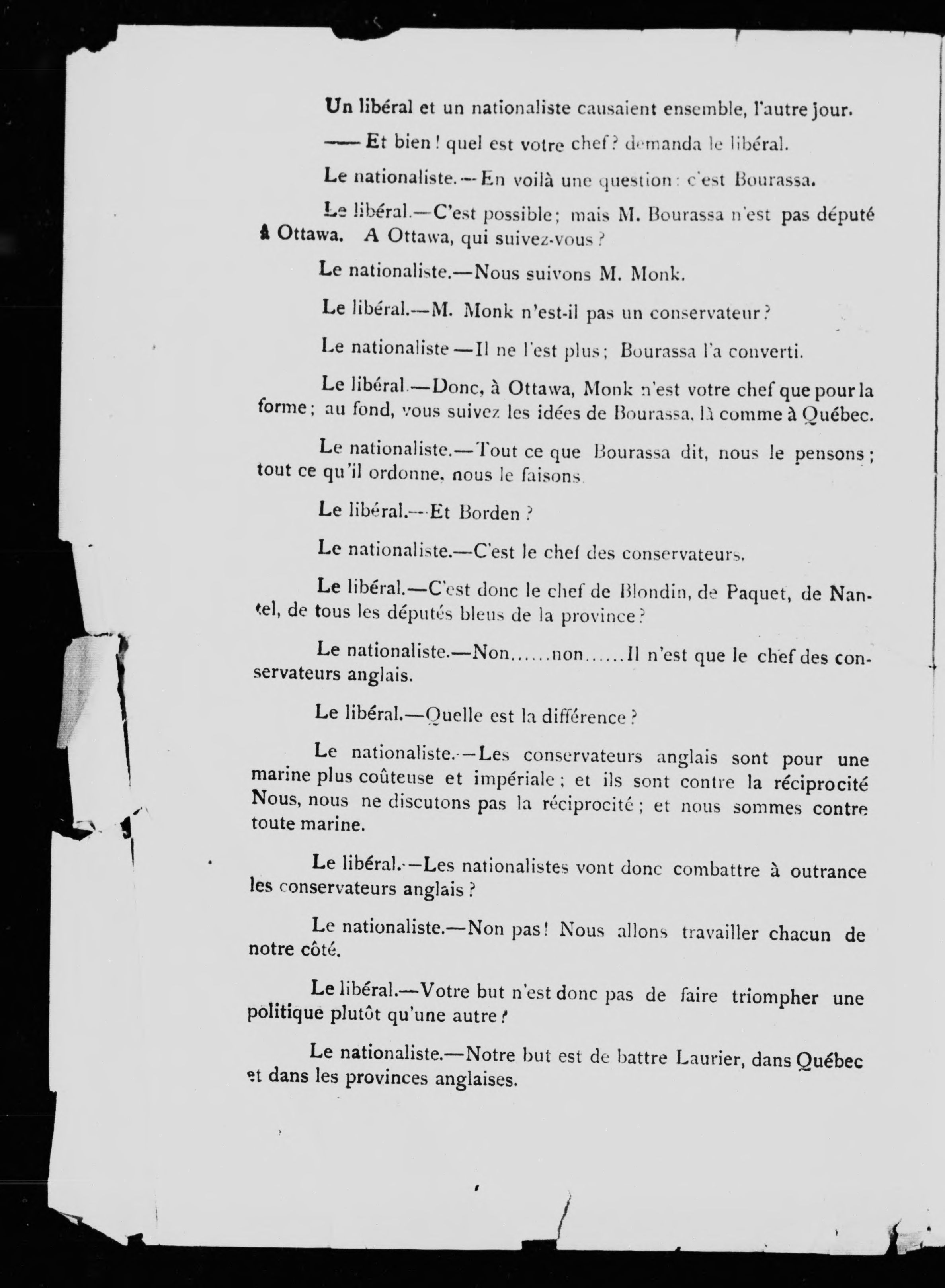 Le chef des conservateurs et des nationalistes, c'est M. Borden! : M. Borden est contre la réciprocité, M. Borden est pour que notre marine soit impériale et plus considérable : travailler contre Laurier, c'est travailler pour Borden - Adresse bibliographique