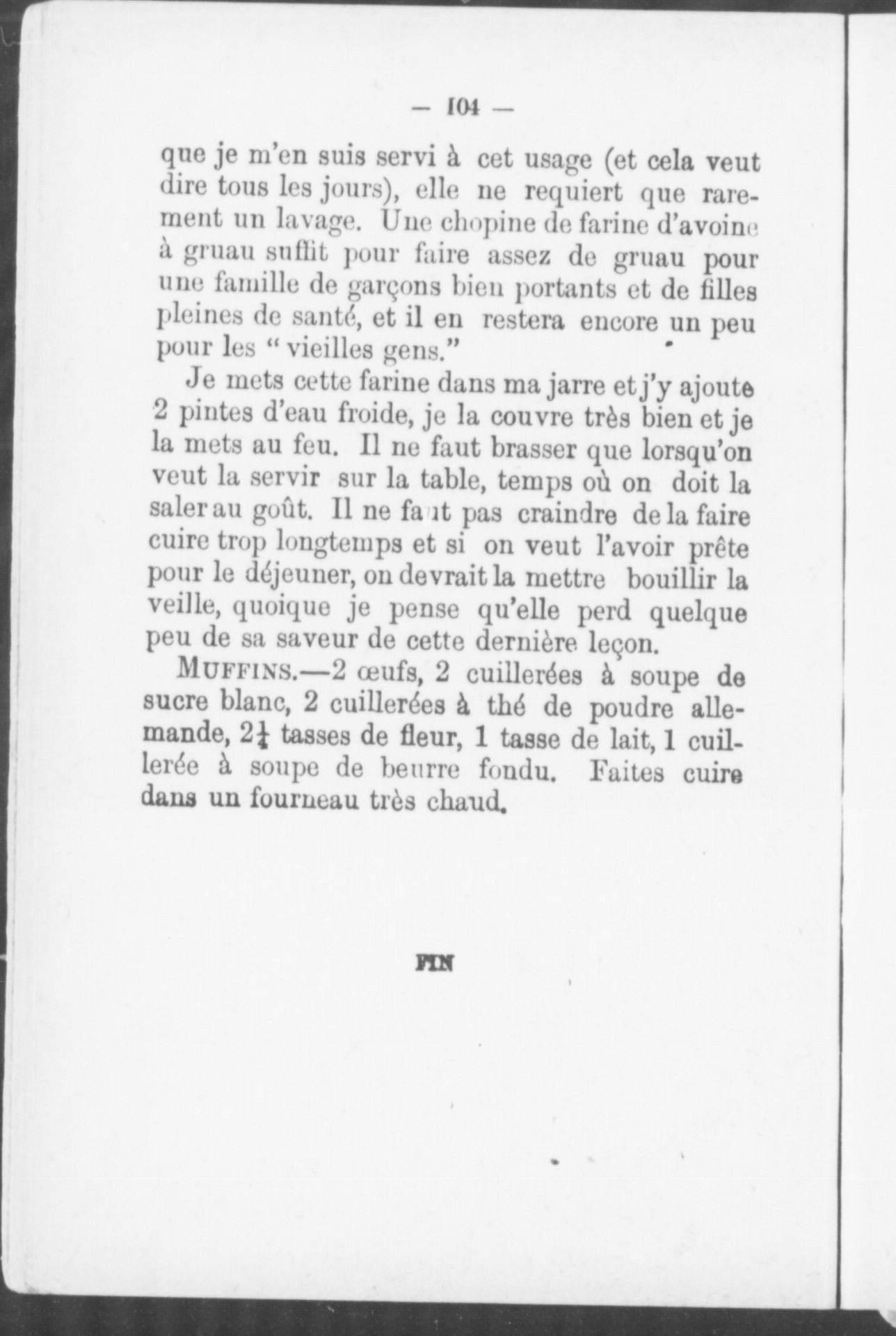 - La cuisinière des familles : contenant les recettes les plus pratiques et les plus simples pour préparer les potages, viandes et poisson; oeufs et salades, légumes, marinades; pâtisseries, gelées, fruits, sauces, conserves, breuvages divers, etc., etc., ainsi que plusieurs conseils très utiles dans un ménage.
