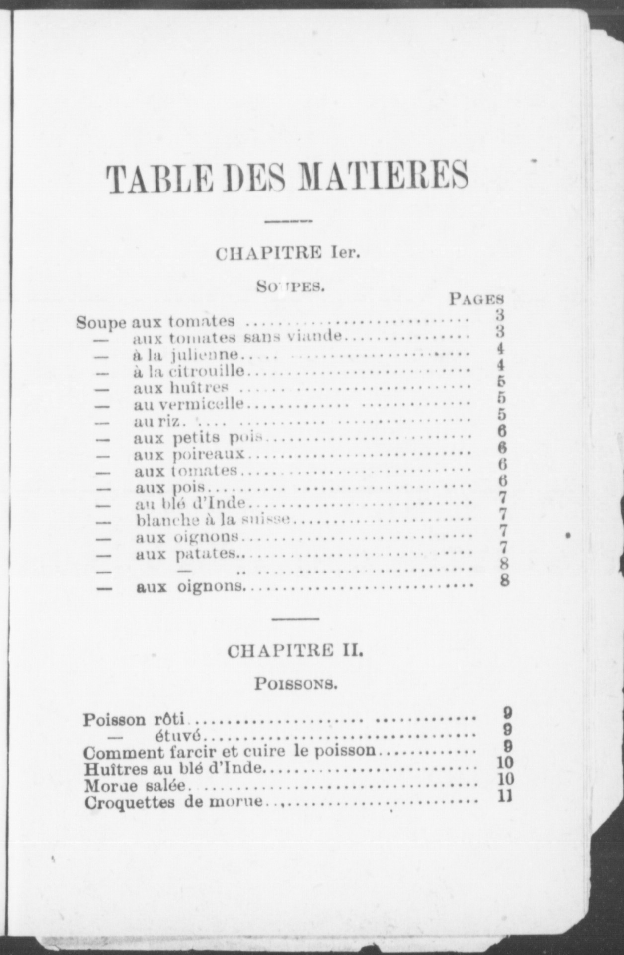 - La cuisinière des familles : contenant les recettes les plus pratiques et les plus simples pour préparer les potages, viandes et poisson; oeufs et salades, légumes, marinades; pâtisseries, gelées, fruits, sauces, conserves, breuvages divers, etc., etc., ainsi que plusieurs conseils très utiles dans un ménage.