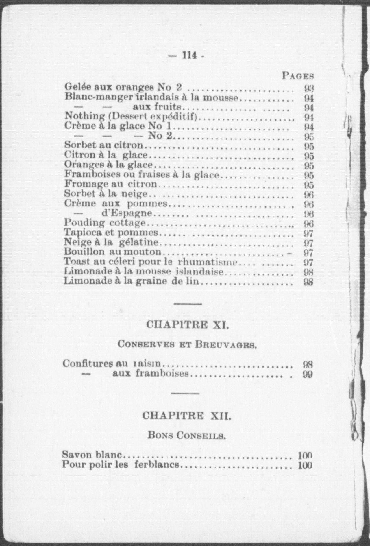 - La cuisinière des familles : contenant les recettes les plus pratiques et les plus simples pour préparer les potages, viandes et poisson; oeufs et salades, légumes, marinades; pâtisseries, gelées, fruits, sauces, conserves, breuvages divers, etc., etc., ainsi que plusieurs conseils très utiles dans un ménage.