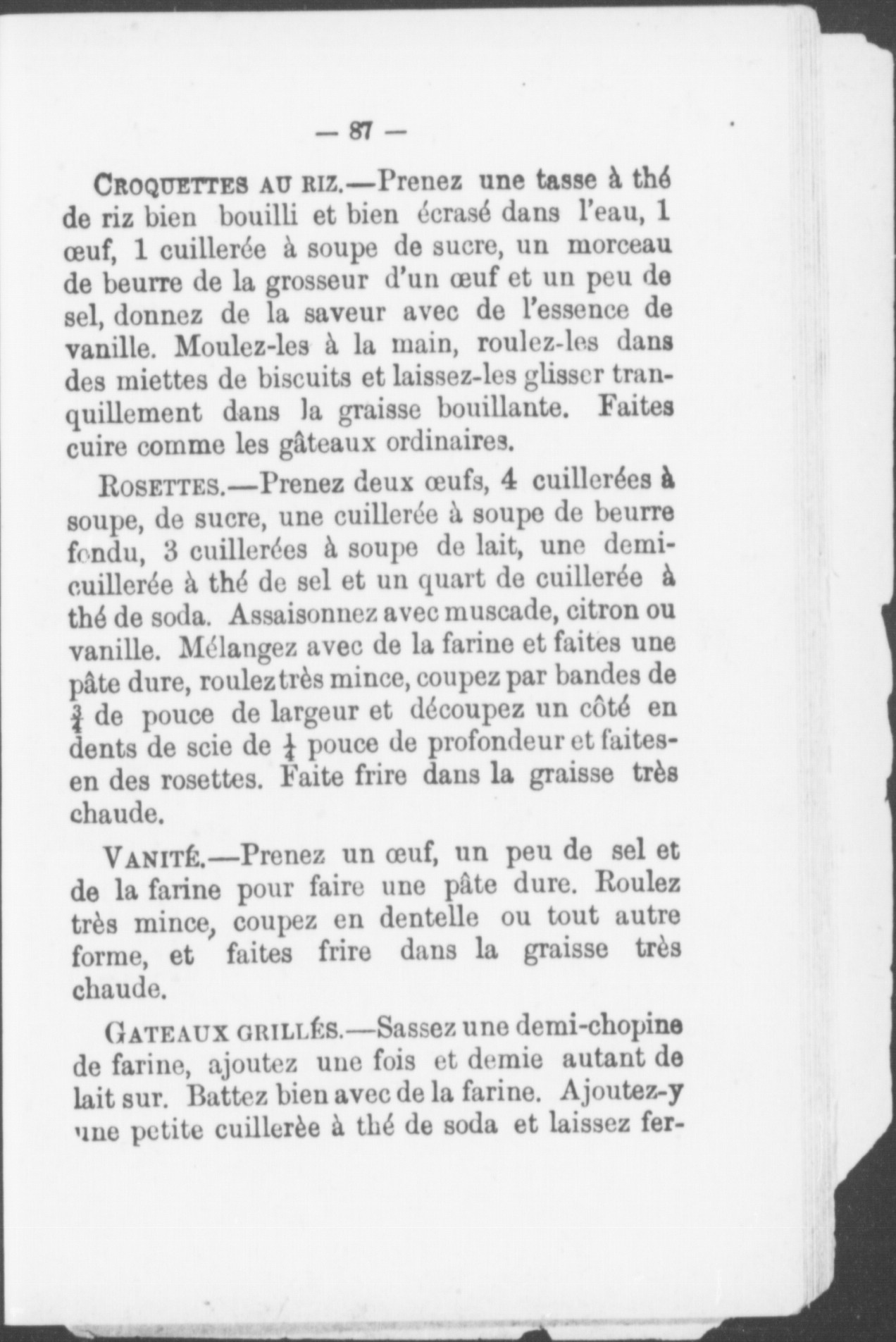 - La cuisinière des familles : contenant les recettes les plus pratiques et les plus simples pour préparer les potages, viandes et poisson; oeufs et salades, légumes, marinades; pâtisseries, gelées, fruits, sauces, conserves, breuvages divers, etc., etc., ainsi que plusieurs conseils très utiles dans un ménage.