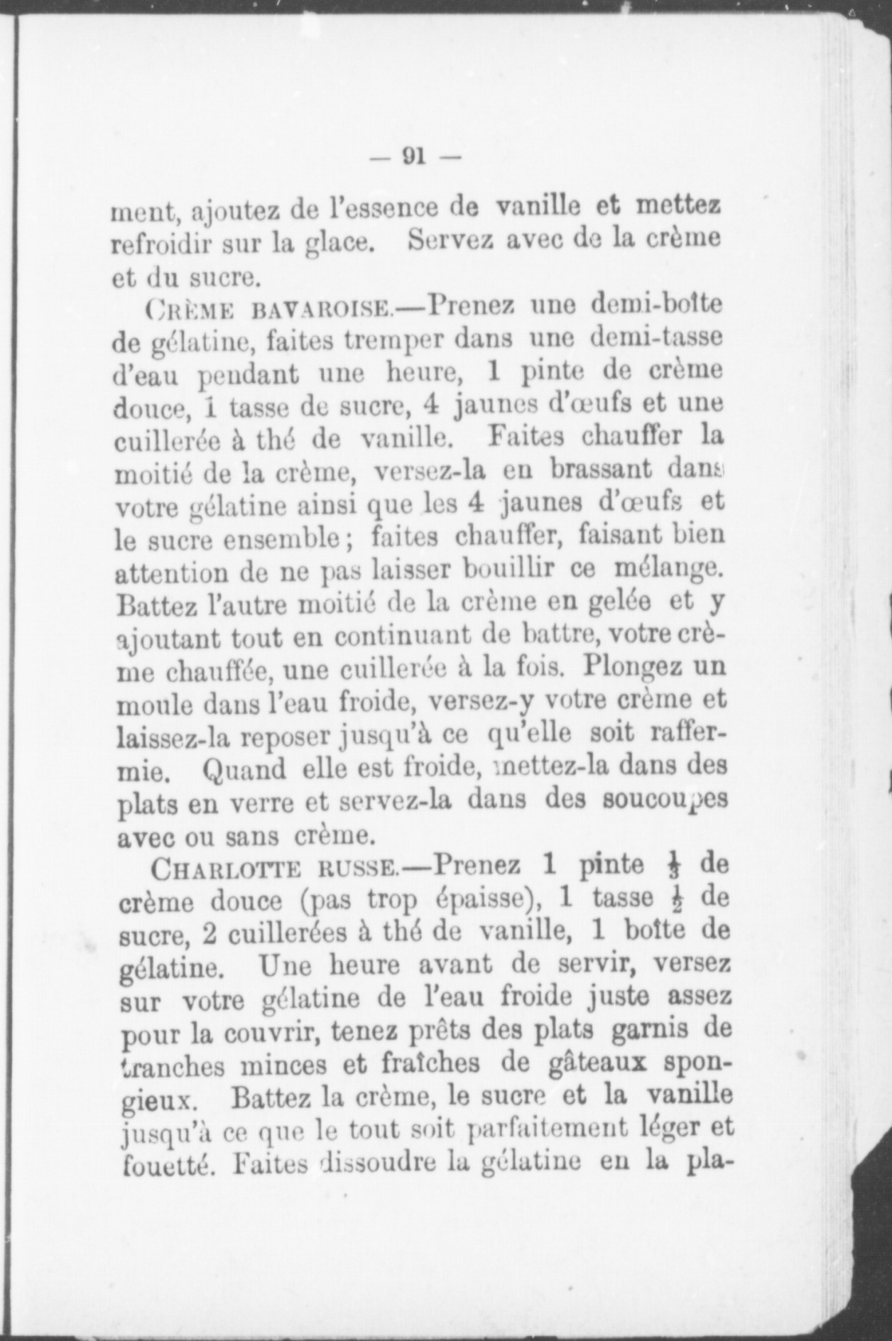 - La cuisinière des familles : contenant les recettes les plus pratiques et les plus simples pour préparer les potages, viandes et poisson; oeufs et salades, légumes, marinades; pâtisseries, gelées, fruits, sauces, conserves, breuvages divers, etc., etc., ainsi que plusieurs conseils très utiles dans un ménage.