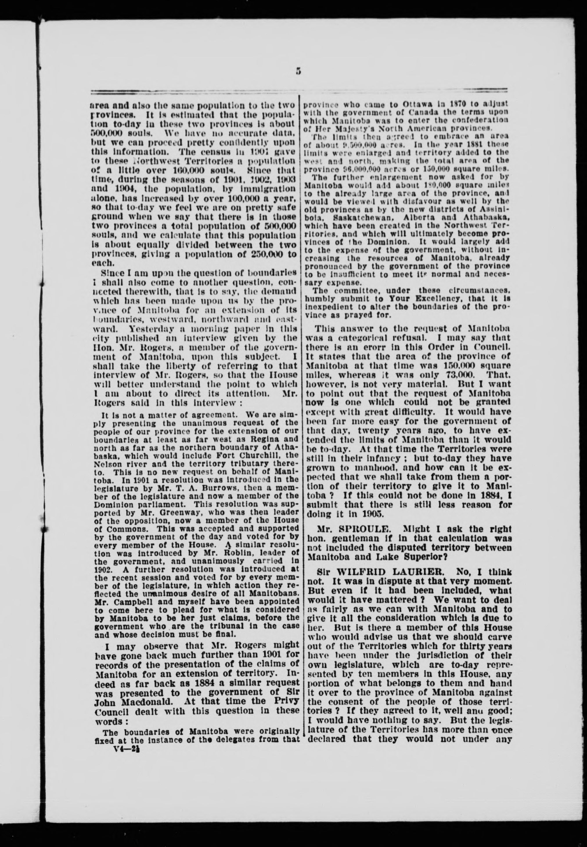 Speech of Rt. Hon. Sir Wilfrid Laurier on provincial government in the North-West