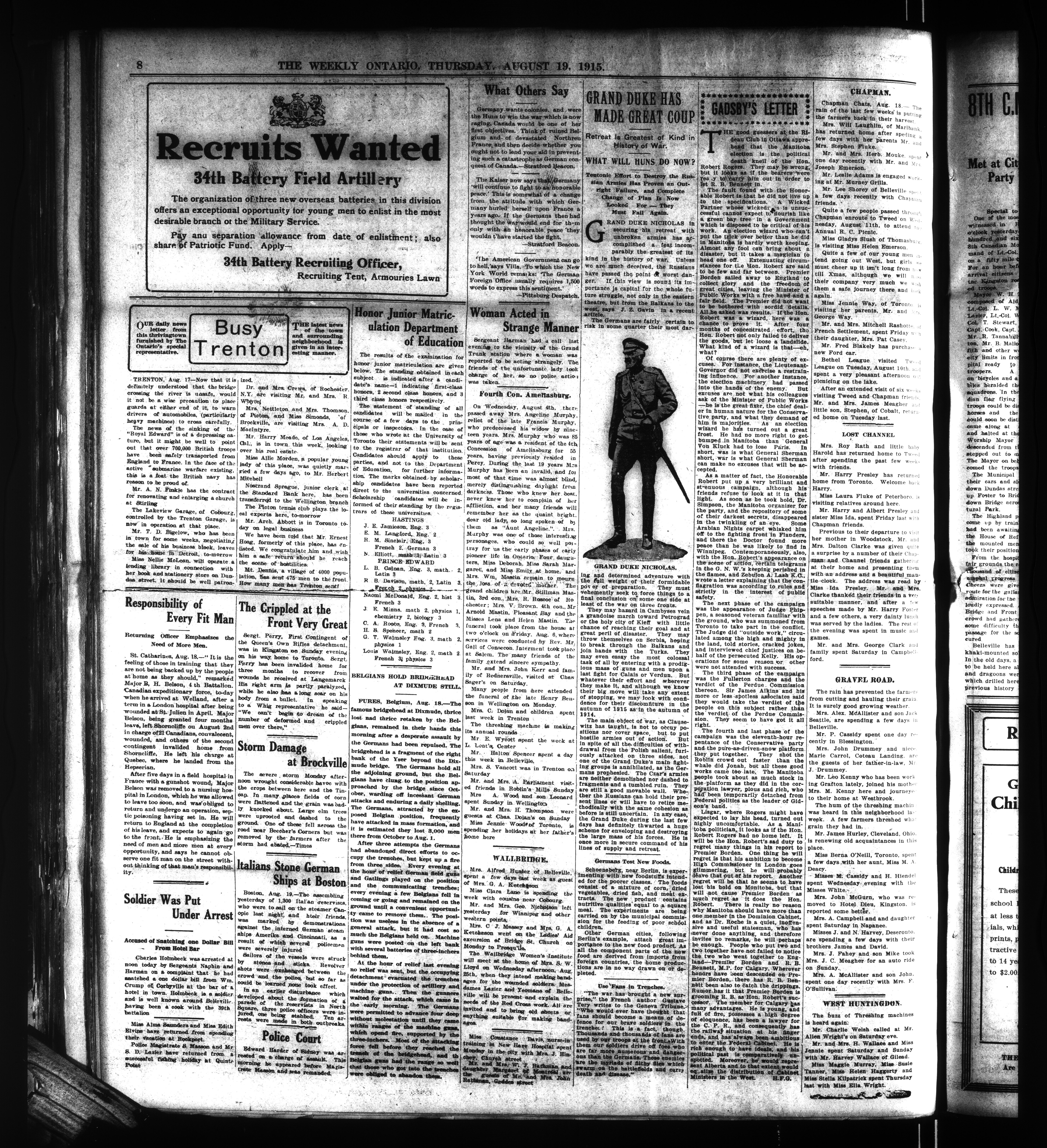 The Weekly Ontario and Bay of Quinte chronicle : August 19, 1915