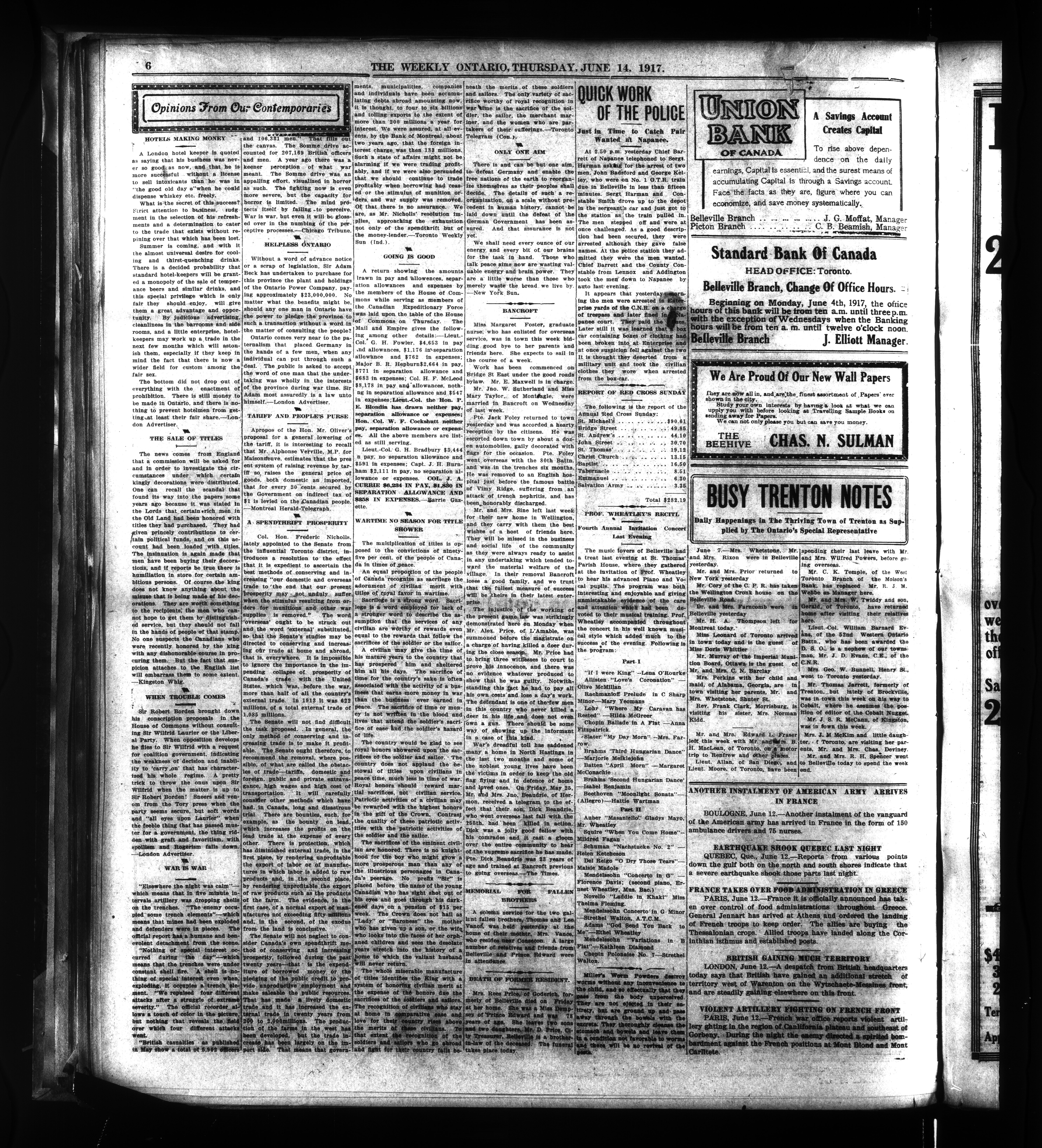 The Weekly Ontario and Bay of Quinte chronicle : June 14, 1917