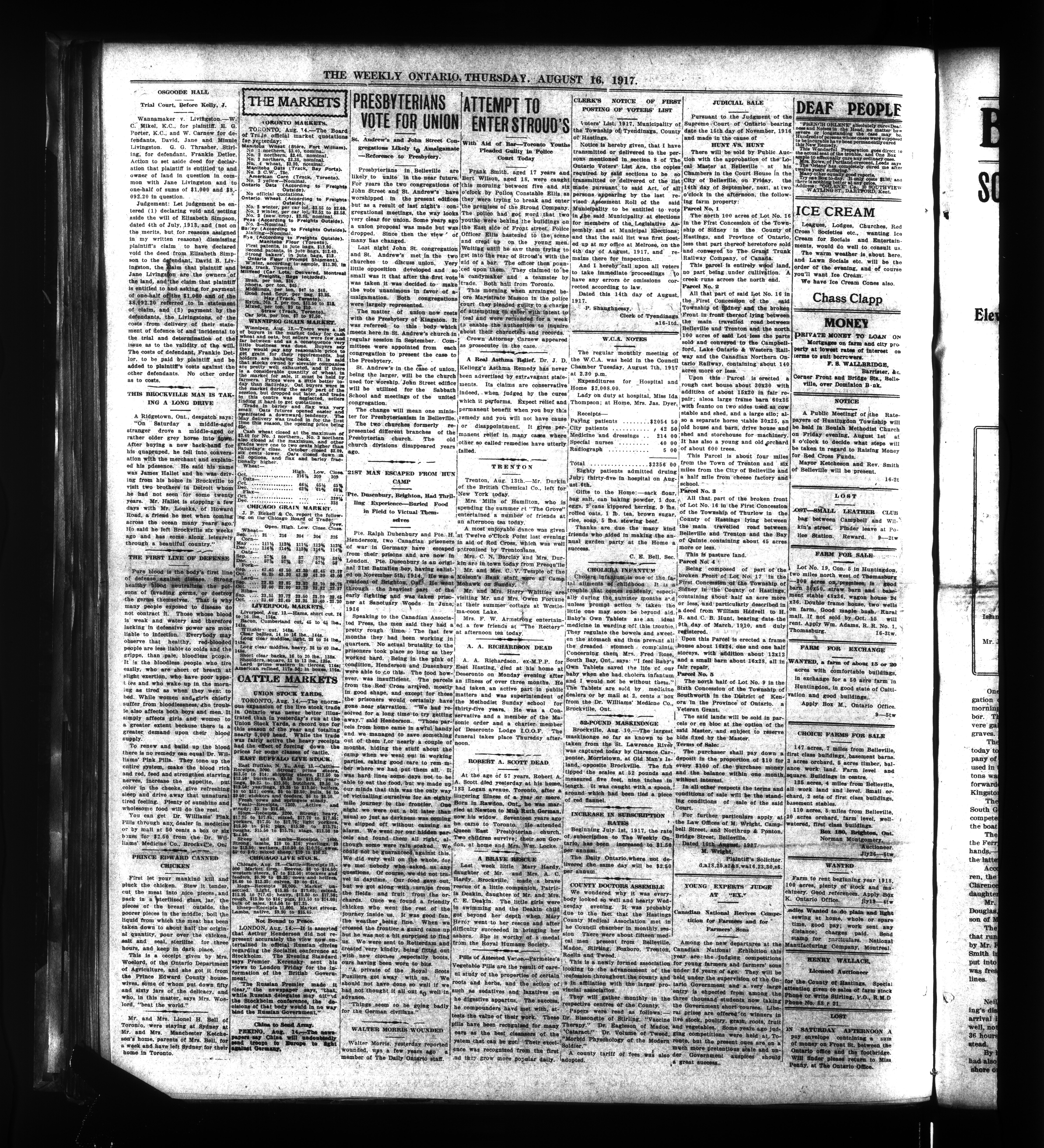 The Weekly Ontario and Bay of Quinte chronicle : August 16, 1917